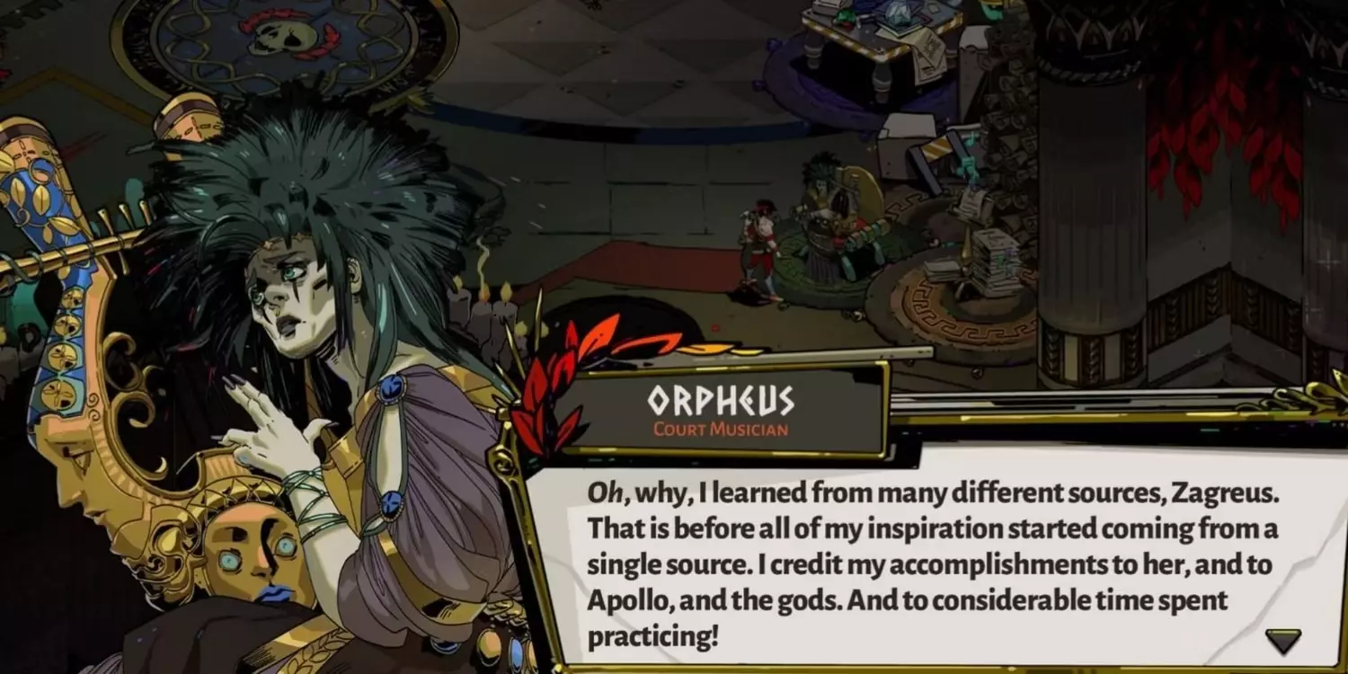 一旦俄耳甫斯回到冥府之家, Zagreus可以通过赠送花蜜与他建立羁绊,俄耳甫斯会讲述离奇故事来激发自己的创作灵感。当玩家既说服他重新歌唱,又向他讲述击败九头蛇的故事后,俄耳甫斯会建议Zagreus自己学习演奏音乐。这将在命运清单上解锁【歌声的馈赠】预言。 当然,Zagreus若想学习俄耳甫斯的技艺,就需要一件乐器。为此,前往房屋承包商处,在【卧室】标签下,花费1枚钻石购买【华丽的里拉琴】。购买后,Zagreus每次进入自己的房间时都可以与里拉琴互动。 学习演奏