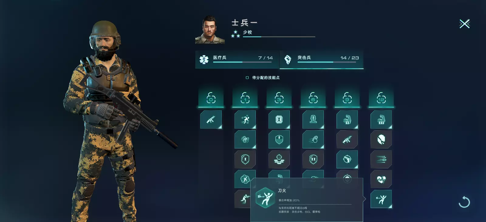 除了前面提到的出现概率较高的战斗效果外,还有其他效果同样会对战局产生影响,以下为大家简单介绍: 受伤:受伤效果会使机动性降低2点,精准度降低10%,暴击率降低30%,防御能力降低50%。 昏迷:如果雇佣兵失去所有HP,将有5%的概率触发昏迷效果。此时,若能使用急救包,可将昏迷中的士兵复活。若士兵在昏迷区域被击中,或遭遇火烧、爆炸,则会死亡。 恐慌:恐慌效果会导致雇佣兵停止执行命令,随机执行某个操作,如不可预测的移动或开火。 烟雾:烟雾效果会使效果区域内所有雇佣兵的闪避技能增加20%,其效果略低于部分掩体,但可通过技能增强效果。烟雾效果使位于效果区域内的战士隐身性降低4点。 扫描可以使目标的所有效果和技能失效(士兵的洞察奖励除外),并增加隐身半径。处于【扫描】效果下的战士会被敌人发现,无论侦查半径大小。 军衔基础介绍 指挥官们在游戏中会经常看到雇佣兵的【军衔】等级。军衔不仅是身份的象征、作战能力的体现,还会对装备使用等方面产生影响。本文将简单介绍游戏内的军衔系统以及提升军衔的方式。