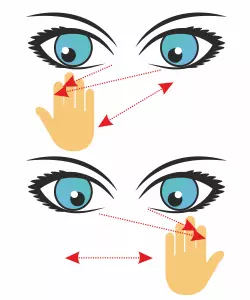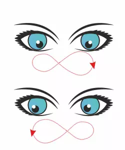 在此情况下,必须遵守一项强制条件:保持头部静止不动,仅移动眼睛。用目光平稳地描绘出横向的“8”字或问号,使在空中形成的图案尽可能大。但在此过程中,眼部肌肉不应过度紧张。重复做几次动作,并交替变换方向。 7.【视线聚焦】