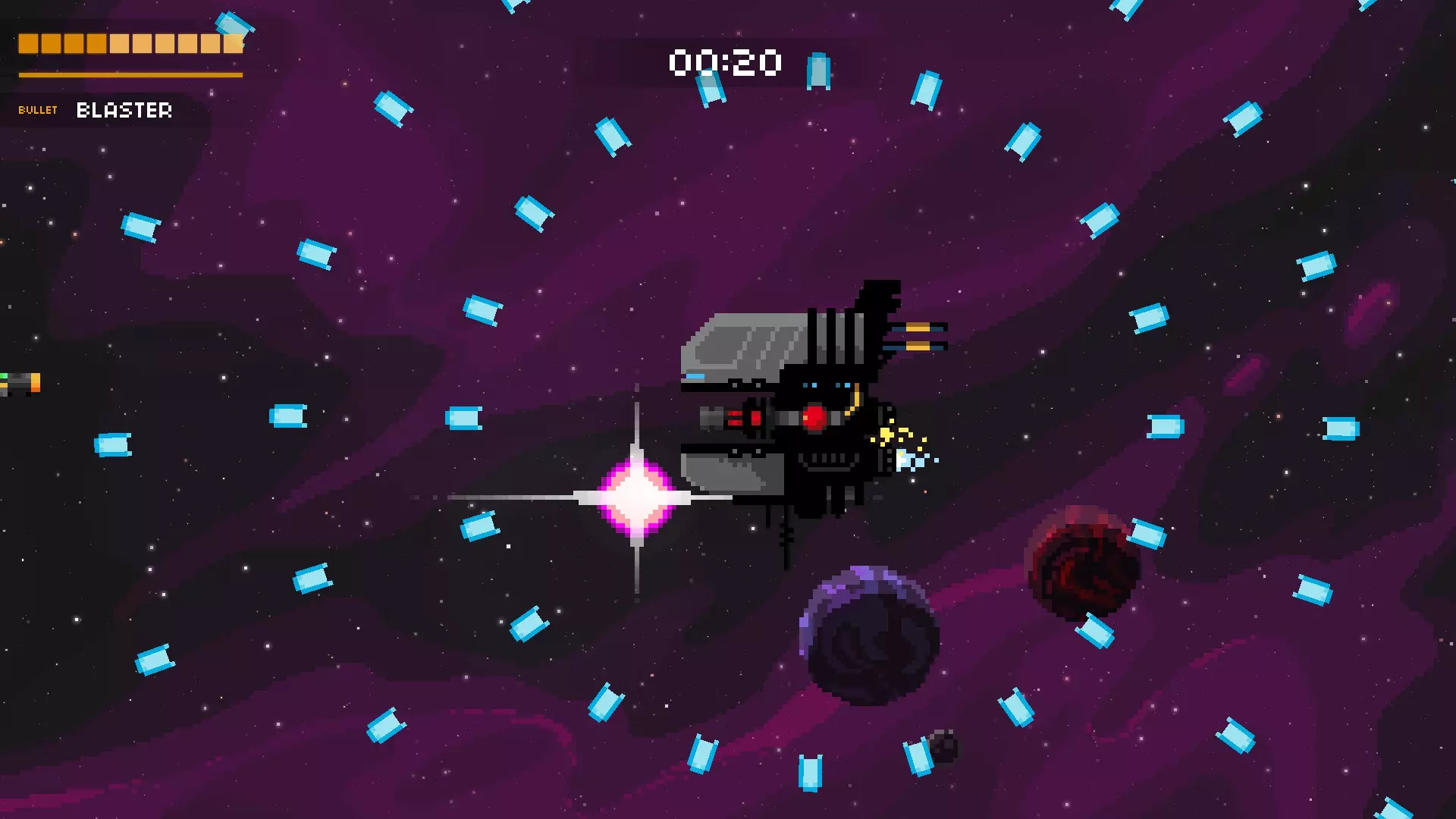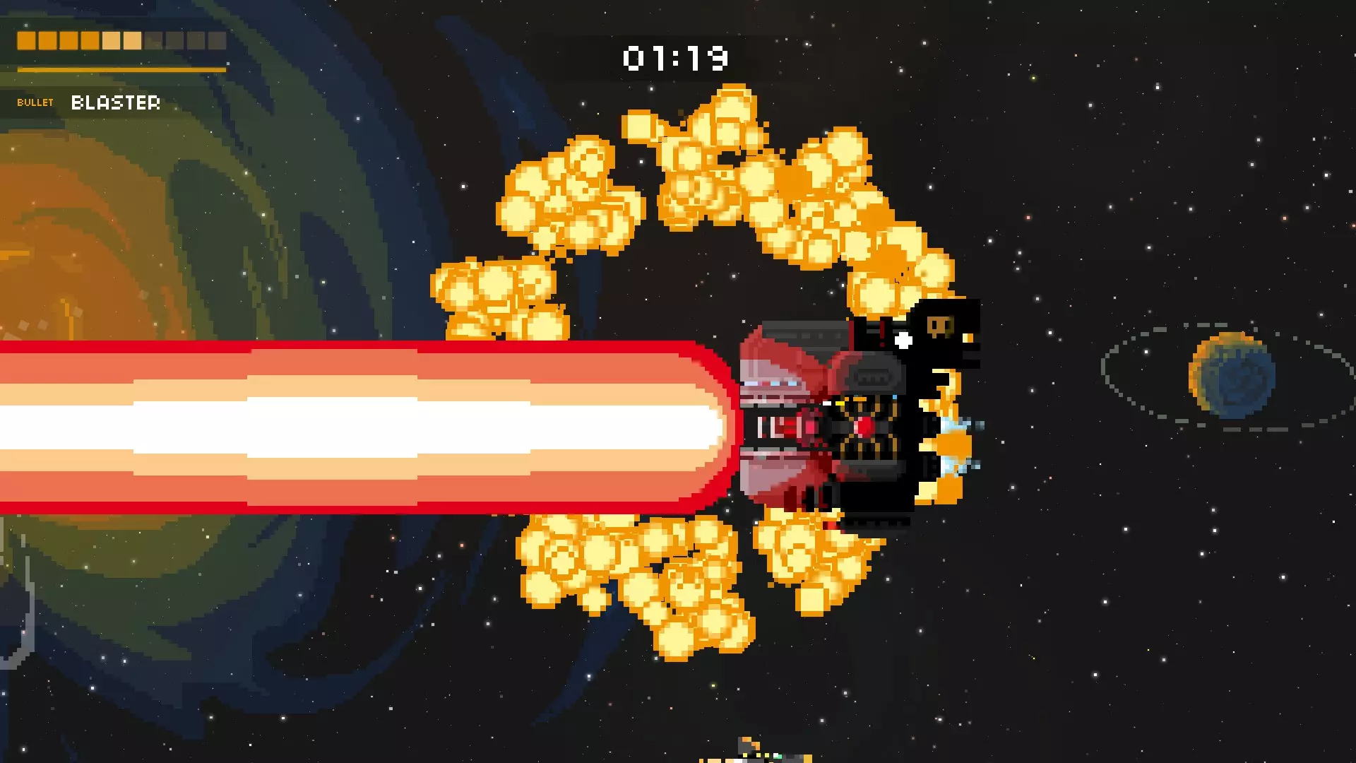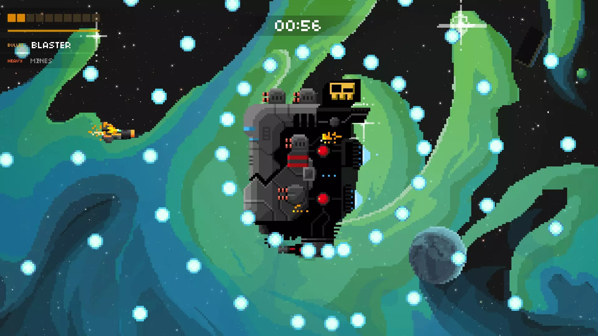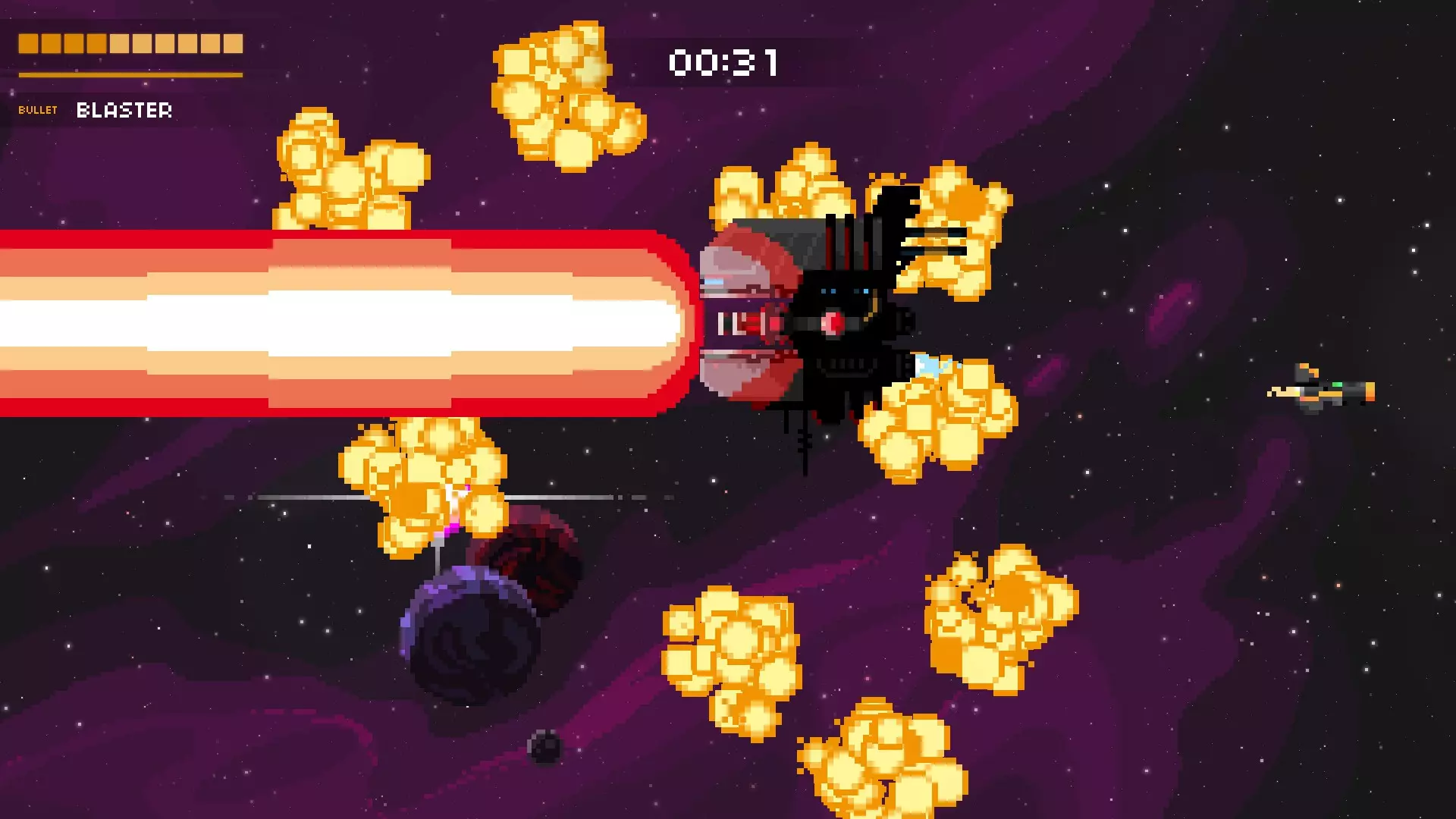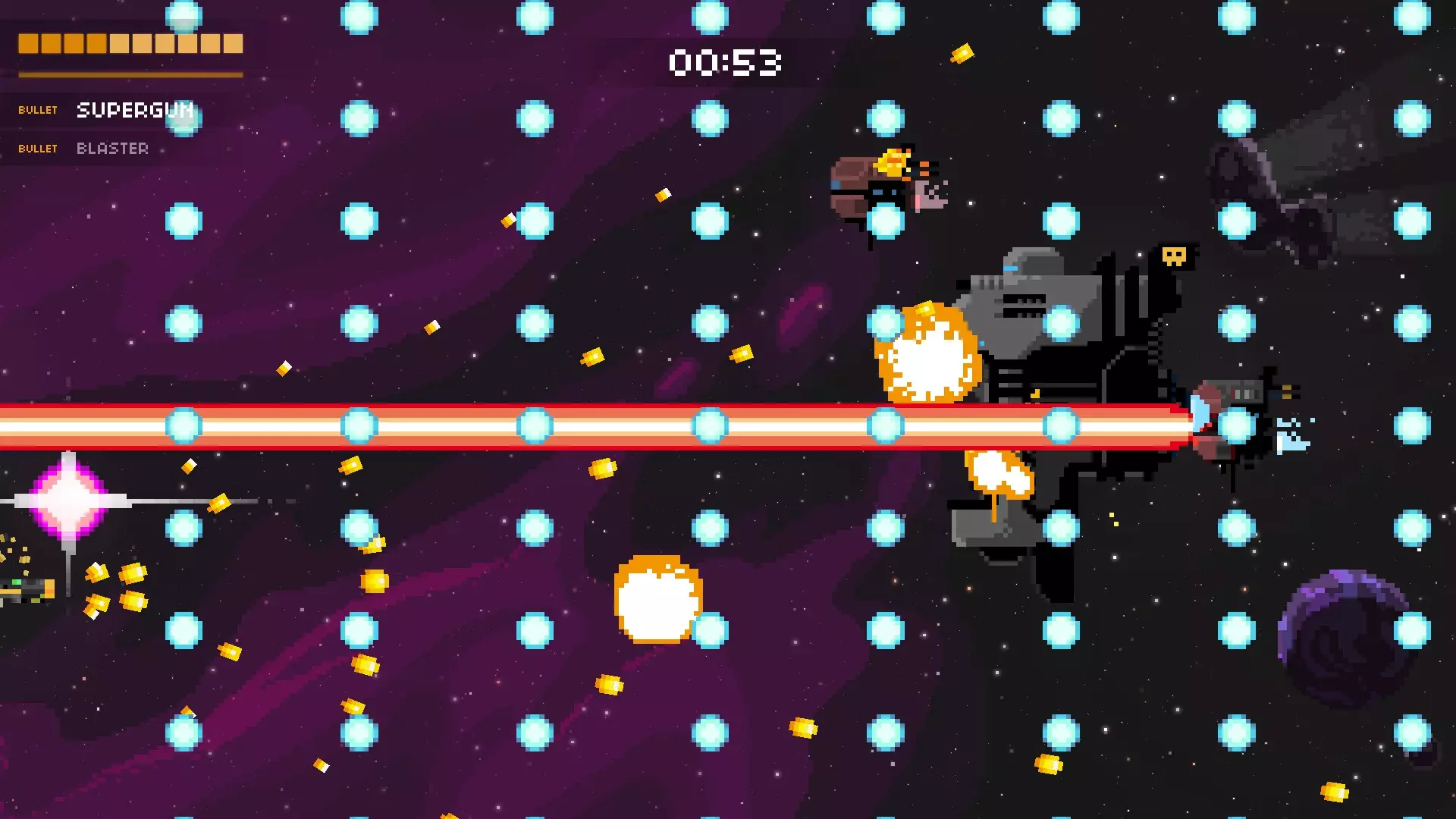 持续的爆炸会向你袭来(别问我这是怎么做到的),它会试图困住你,然后用巨型激光对你进行壁咚攻击。在攻击开始前就移动到它身后。通常,你可以移动到最顶部或最底部来避开爆炸。