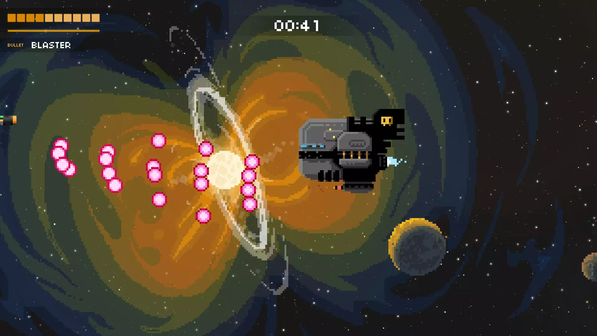 危险攻击。当你位于他左侧时,务必确保始终小幅上下移动。如果他靠得太近,就绕到他身后。一定要从上方进行此操作!这样你就能远离“死亡连射”。当他开始后退时,再次向他射击。 母舰 即将推出……希望如此。我是个懒家伙。 最终提示: 保留你的初始武器!爆能枪是对抗所有 boss 的相当不错的武器。它对大多数(如果不是全部)boss 都非常有效!除了母舰,我用爆能枪可以轻松通过每个 boss。保留你的爆能枪,再配备一个次要武器,仅用于辅助或清怪。 很多攻击只需要你进行持续移动。几乎每个 Boss 至少有一种攻击会发射直接瞄准你的子弹。当新的攻击开始且你不清楚会发生什么时,一定要不断上下移动,直到你了解该攻击的模式,以避免被快速瞄准的子弹击中。这能在后期 Boss 战中救你一命! 许多 Boss 的攻击会留下巨大的安全区域/最佳位置,或者允许你创造安全区域。尽可能将你的机器人放置在这些区域内,机器人可以从任何角度攻击,因此,通常当 Boss 发动仅对左侧区域造成威胁的攻击时,把机器人放在 Boss 身后,能让你将多个机器人集中起来,轻松让太空海盗为他们糟糕的工程师感到羞愧。在我撰写本文时,机器人(幸运地)已经遭到了大幅削弱,但这仍然是一种可行的策略,希望未来它能再次变得更具实用性。 不要被敌人的攻击吓倒。如果你感到不知所措,就无法分析屏幕上的情况,也无法制定出好的策略。试着保持冷静。万一游戏结束了,听听下一个技巧! 游戏结束界面的背景中会显示 boss 仍在攻击。如果你死于一种从未见过或不知道如何应对的攻击,就仔细观察它。有一点需要注意的是,当你死亡时,boss 会认为你在屏幕中央,所以所有瞄准性的射击都会穿过中央。利用这一点来判断你是否能够躲避攻击。出色应对 Boss 意味着你不会损失倍率。由于 Boss 能提供大量分数,高倍率状态下击杀 Boss 会让你获得极高的分数。尤其是后期 Boss 能带来非常非常多的分数,所以如果你想冲击排行榜,就必须能够应对后期的 Boss。