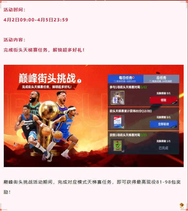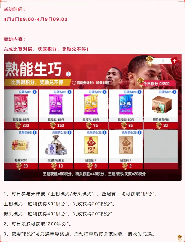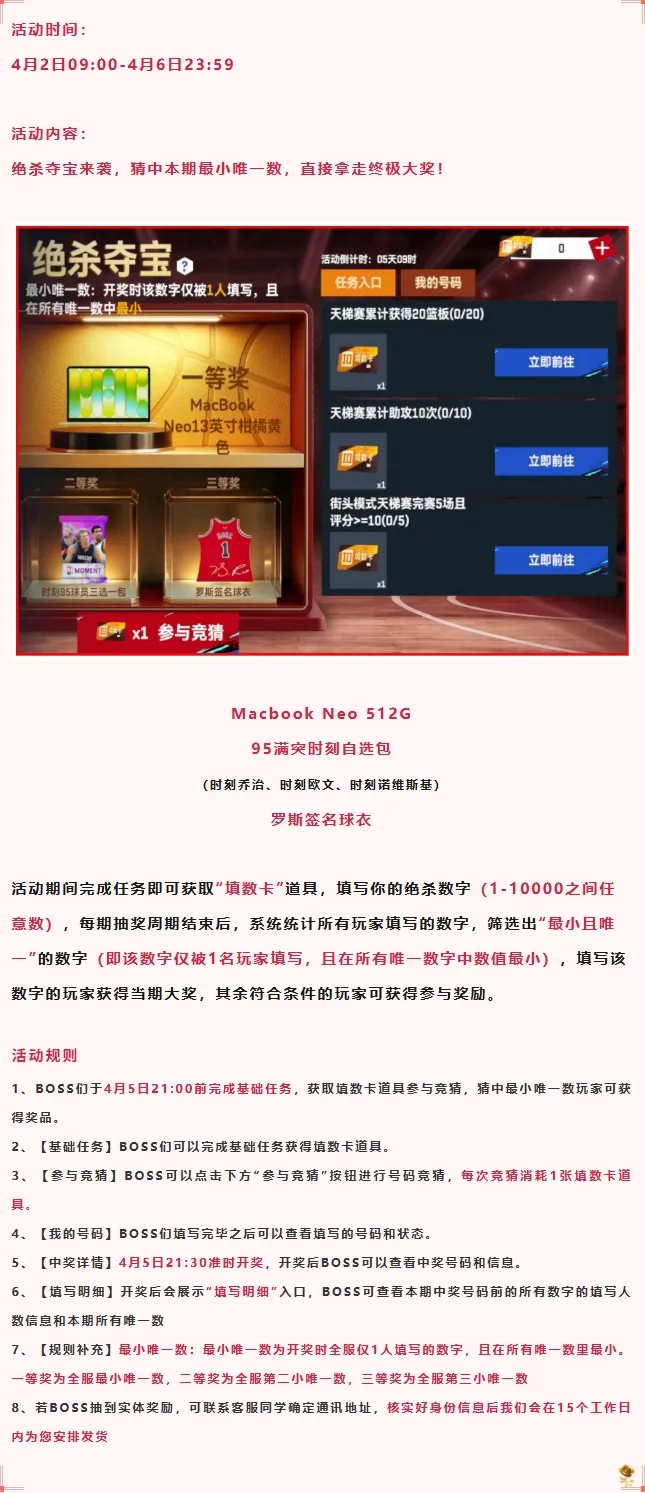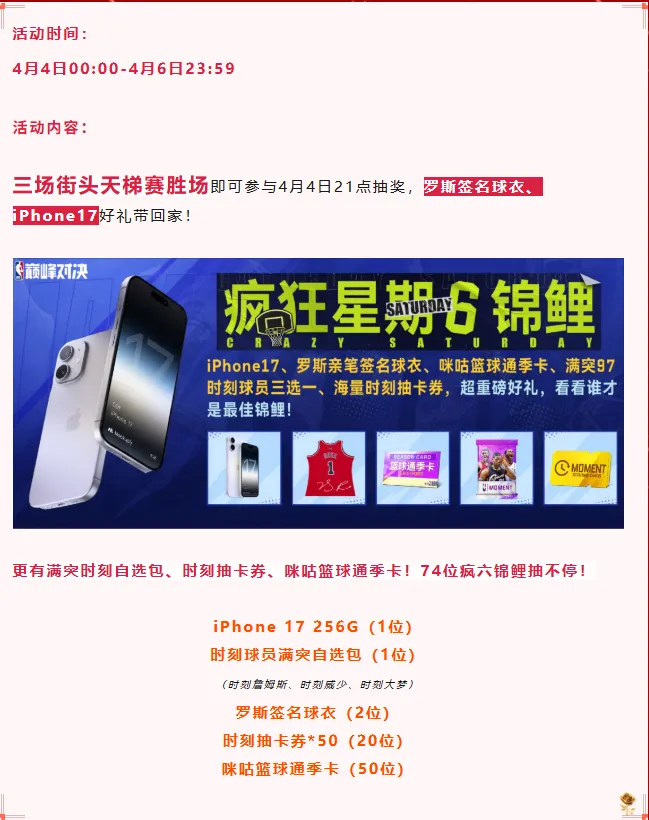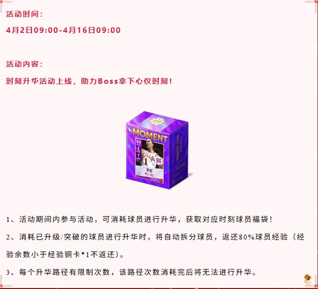 参与荣耀时刻球员抽取