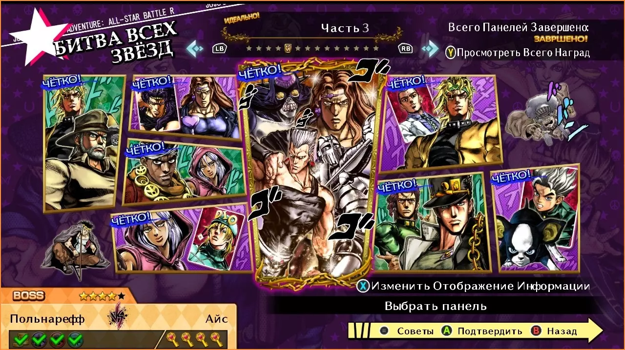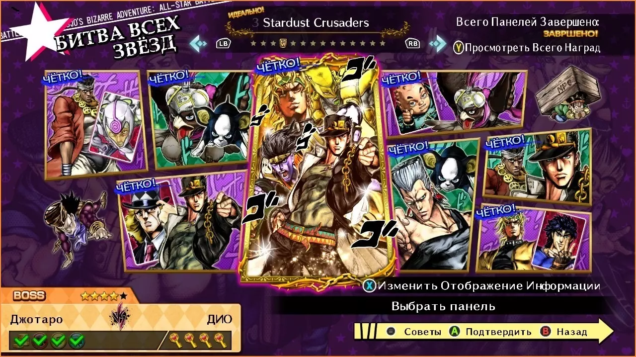 老约瑟夫·乔斯达 vs DIO 难度:★★☆☆☆ 1. 使用风格【边跑边打!】 2. 使用技能【狡猾战术】 3. 使用技能【隐者之紫】 香草冰 vs 卡兹 难度:★★★☆☆ 1. 不丢失任何一个回合获胜 2. 使用技能【你好大的胆子!】 3. 使用技能【迪奥大人!】 穆罕默德·阿布德尔 vs 梅拉雅 难度:★★☆☆☆ 1. 使用GHA 2. 在一场对战中召唤1次援助 3.使用技能【交叉火力飓风】。 梅拉雅 vs 迪亚哥·布兰度 难度:★★★☆☆ 1. 击倒敌人。 2. 达成3级【磁力计量表】风格等级。 3. 完成HHA。 迪奥 vs 川尻浩作 难度:★★★☆☆ 1. 完成技能【他…消失了!】。 2. 使用风格【时间停止!】。 3. 打出50连击。 空条承太郎 vs 花京院典明 难度:★☆☆☆☆ 1. 攻击对手的替身。 2.使用HHA。 伊奇 vs 广濑康一 难度:★★★★☆ 1. 击倒对手。 2. 完成帅气闪避。 3. 使用技能【“讨厌”的习惯】。 4. 用GHA获胜。 让·皮埃尔·波鲁纳雷夫 vs 香草冰 难度:★★★★☆ 1. 在一局内召唤1次援助。 2. 使用技能【准备下地狱吧!】。 3. 使用技能【你这可怜的野狗!】。 4. 使用技能【亲吻我的剑吧!】。星尘十字军(第三部)