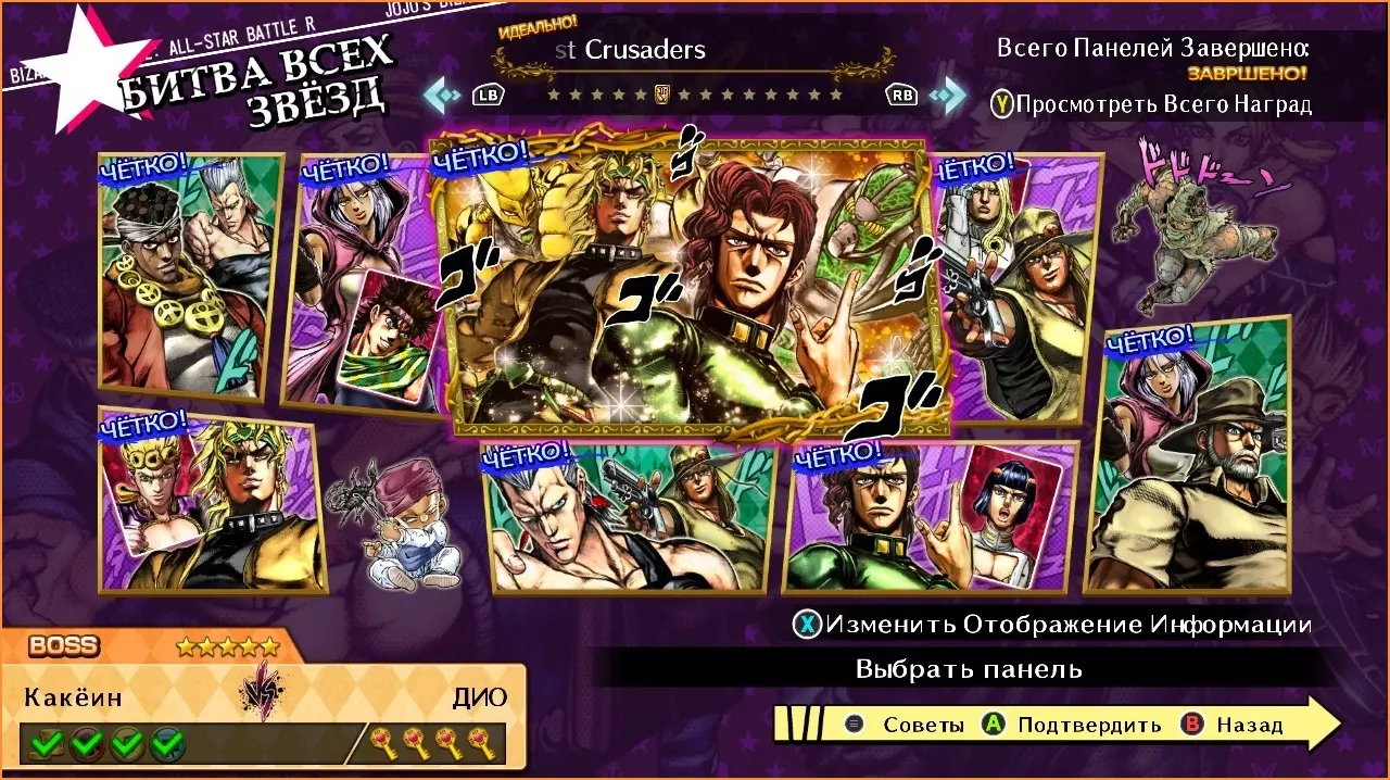 阿卜杜勒 vs 盖布神 难度:★★★☆☆ 1. 执行嘲讽动作。 2. 施展抓取技【红色绳索(Red Bind!)】。 3. 用技能【交叉火力飓风变体(Crossfire Hurrican Variation)】获胜。 伊奇 vs 宠物店 难度:★★☆☆☆ 1. 使用特殊技【沙之圆顶(Sand Dome)】。 2. 使用技能【“讨厌”的习惯(A nasty habit)】。 3. 完成GHA。 承太郎 vs 史比特瓦根 难度:★★★☆☆ 1. 打出5连击。 2. 使用抓取技【这难以置信的力量...!】。“这股难以置信的力量……!” 宠物店 vs 繁崎哲郎 难度:★★★☆☆ 1. 使用“飞行模式”风格。 2. 使用GHA(极限爆发攻击)。 3. 使用技能“嘎嘎嘎!”。 波鲁纳雷夫 vs 伊奇 难度:★☆☆☆☆ 1. 率先发起攻击。 2. 将对手击至倒地。 承太郎 vs 阿布德尔 难度:★☆☆☆☆ 1. 开启替身模式。 2. 在替身模式下用普通攻击击中对手。迪奥 vs 乔纳森 难度:★★★★☆ 1. 使用快速取消。 2. 使用技能【哦,这很适合我!】。 3. 使用技能【这就是...世界!】。 4. 以GHA获胜。 承太郎 vs 迪奥 难度:★★★★☆ 1. 率先发起攻击。 2. 攻击对手的替身。 3. 以GHA终结。 4. 在RUSH模式中获胜。 星尘十字军(第二部分)