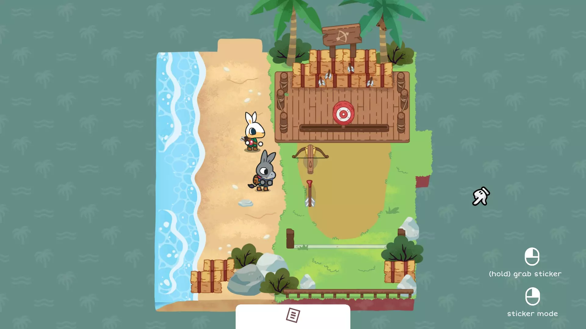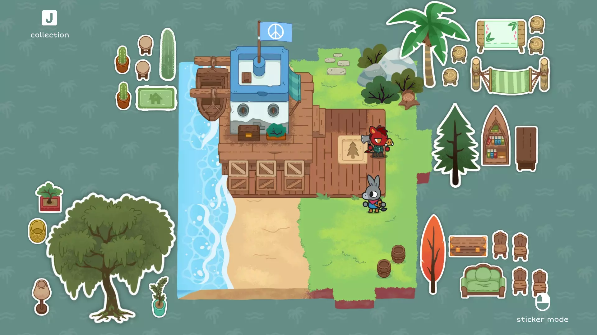 C3 使用传送玩偶登上带有向下隧道的山脊,以到达隐藏洞穴。 新贴纸 海盗旗(解锁后) 带 puzzle piece 的金色雕像(解锁后) 海盗帽服饰(解锁后) 将4个 puzzle piece 放置在正确位置以解锁宝藏并获得海盗帽。这将解锁成就 the hidden treasure。 如果你已收集本指南中提到的所有贴纸,还将解锁成就 sticker collection。 新成就 the hidden treasure sticker collection G6 最后部分。 将所有徽章放置在基座上以解锁彩虹桥。这不会计入成就 a rainbow。 G7 这是无法拾取的最后一封信。阅读它将解锁成就 father。新成就:Father Sticker book 第1页:小鸟伙伴、箱子探索者、雕像螃蟹 第2页:橘子树、深色灌木丛、树桩、营火、发光灌木丛、小狗伙伴、红树 第3页:太阳、椰子树、空桶、满桶、老绵羊、带齿轮的金色雕像、齿轮、蝾螈伙伴 第4页:父亲的信1、父亲的信2、父亲的信3、父亲的信4、爱之勋章、喜悦之勋章、自信之勋章、毅力之勋章、安全之勋章 第5页:黄色空罐头、红色空罐头、奶牛伙伴、钓鱼竿、锯鳐、鳟鱼、海星、海蝴蝶、海马 第6页:桥、木匠、锯子、空矿车、满矿车、木桶 第7页:猎豹伙伴、狗、小松树、旗杆、蓝白旗、爱心旗、矿工猴子 第8页:爱心雕像、带弓的金色雕像、十字弓、弓箭手兔子、箭、猴子兄弟兔子姐姐 第9页 法师雕像 金戒指 金牙 地图 紫色树 第10页 巨大脚印 月亮 粉色树蛋 巨鸟 第11页 梯子 隐士 紫色灌木丛 金色雕像 隐士与狗 第12页 水晶 炸弹 乌鸦伙伴 黑猫 便携帐篷 小松树 第13页 盆景树 地毯 钢琴 屏风 床 大箱子 第14页 椅子 编织篮 大桌子 沙发 咖啡桌 落地灯 衣柜 书架 光滑凳子 矮柜 第15页 带布桌子 盆栽植物 吊床 螺旋纹凳子 盆栽仙人掌 纸杯蛋糕 海牛伙伴 气球家具 第16页 仙子(8个) 大仙子 光明女神 光明女神金像 第17页 河马 雨云 小提琴 音乐家乌龟 垂柳 救生圈 企鹅伙伴 第18页 小箱子 盆栽蕨类 望远镜 收音机 蒲团 金色浣熊雕像 女巫棒棒糖网球拍 带网球拍的金色雕像 浣熊伙伴 第19页 骨头 水獭伙伴 小仙人掌 大仙人掌 铲子 羊驼伙伴 第20页 大黑松树 大锅 幽灵 黑色灌木 小黑松树 传送玩偶 黑暗女神 猫头鹰伙伴 第21页 拼图碎片(4个) 带拼图碎片的金色雕像 海盗旗 第22页 女神雕像 狮子哥哥 失踪的负鼠弟弟 失踪的马弟弟 失踪的老鼠弟弟 失踪的树懒弟弟 可选的众筹专属页面。仅在输入收到的众筹代码后才会出现。输入代码后,你在众筹时填写的名字也会显示在左页上方。第23页(孤独村支持者) 孤独村旗帜 孤独村毛绒玩具 孤独村雕像 第24页(社交挑战) Kickstarter旗帜 Kickstarter奖杯 光明兄弟会 收集4个失散的兄弟和8个仙子。 需要:雕像、十字弩、箭、铲子、炸弹、音乐家乌龟、雨云、月亮、鱼竿和满桶。 仙子1 D3,需要用雕像按下按钮 仙子2 A5,用十字弩和箭射击漂浮的目标。 仙子3 E4,用炸弹炸开巨石 仙子4 F3,将雨云放在雕刻上。 仙子5 G3,将音乐家乌龟放在音符上。 仙子6 G4,将月亮放在雕刻上,并在闪光处使用鱼竿。 仙子7 E7,用满桶浇灌幼苗。 仙子8 B3,挖掘地面的裂缝。光明女神 将全部8个仙子带到B6并送回她们的姐姐身边。除非你先把她变成贴纸,否则每送回一个仙子后她都会说话。 失落的兄弟 需要营火和雨云 失落的兄弟1 A3,使用营火解冻失落的兄弟。 失落的兄弟2 D4,移动小树让失落的兄弟进入视野。 失落的兄弟3 G3,与失落的兄弟对话将他唤醒。 失落的兄弟4 F7,使用雨云(或可能用装满水的桶)对失落的兄弟使用。 解锁神庙 需要铲子、金牙、戒指和巨足 巨足 A5,拿起巨足并将其移至A6雪地中的圆圈处。 金牙 E7,挖掘地面上的裂缝。 戒指 D3,挖掘地面上的裂缝。 将金牙放回B1的头骨上,将戒指戴在B3的手上。进入隧道,找回失踪的兄弟们。除非雄狮兄弟被变成贴纸,否则每找回一个兄弟后,他都会说话。当所有兄弟都回来后,把光明女神交给他们。 黑暗兄弟会 收集4个失踪的兄弟并完成女巫仪式 黑暗女神 需要太阳、月亮、幽灵和黑猫。 黑猫 C4,用狗解锁黑猫。 幽灵 C7,在墓碑旁使用黑猫 黑暗女神与传送玩偶 B7,先放置太阳,再放置月亮,最后放置幽灵,将猫头鹰转化为黑暗女神,她会给你传送玩偶。 失踪的兄弟们 需要营火和雨云 失踪的兄弟1 A3,用营火融化失踪的兄弟。 失踪的兄弟2 D4,移动小树让失踪的兄弟显现。失落的兄弟3 G3,与失落的兄弟对话以唤醒他 失落的兄弟4 F7,使用雨云(或可能用装满水的桶)对失落的兄弟使用 解锁神庙 需要铲子、金牙、戒指、巨人之足 巨人之足 A5,拿起巨人之足并将其移至A6雪地中的圆圈处 金牙 E7,挖掘地面的裂缝 戒指 D3,挖掘地面的裂缝 将金牙放回B1的头骨上,将戒指戴在B3的手上 进入隧道并带回失落的兄弟们。除非狮子兄弟被变成贴纸,否则每带回一个兄弟后他都会说话。当所有兄弟都回来后,把他们的黑暗女神交给他们 隐藏宝藏 收集4块 puzzle 碎片 传送娃娃 需要太阳、月亮、幽灵和黑猫 黑猫 C4,使用狗来解锁黑猫幽灵 C7,在墓碑旁使用黑猫 黑暗女神与传送玩偶 B7,先放置太阳,再放置月亮,最后放置幽灵,将猫头鹰转化为黑暗女神,她会给你传送玩偶。 puzzle pieces 需要传送玩偶、鱼竿、营火和铲子(装满水的桶和梯子为可选物品) puzzle piece 1 A4,在结冰的湖边放置营火,钓起 puzzle piece。 puzzle piece 2 C2,扳动岩架上的开关。可以使用传送玩偶,或者将装满水的桶倒在幼苗上并使用梯子。 puzzle piece
