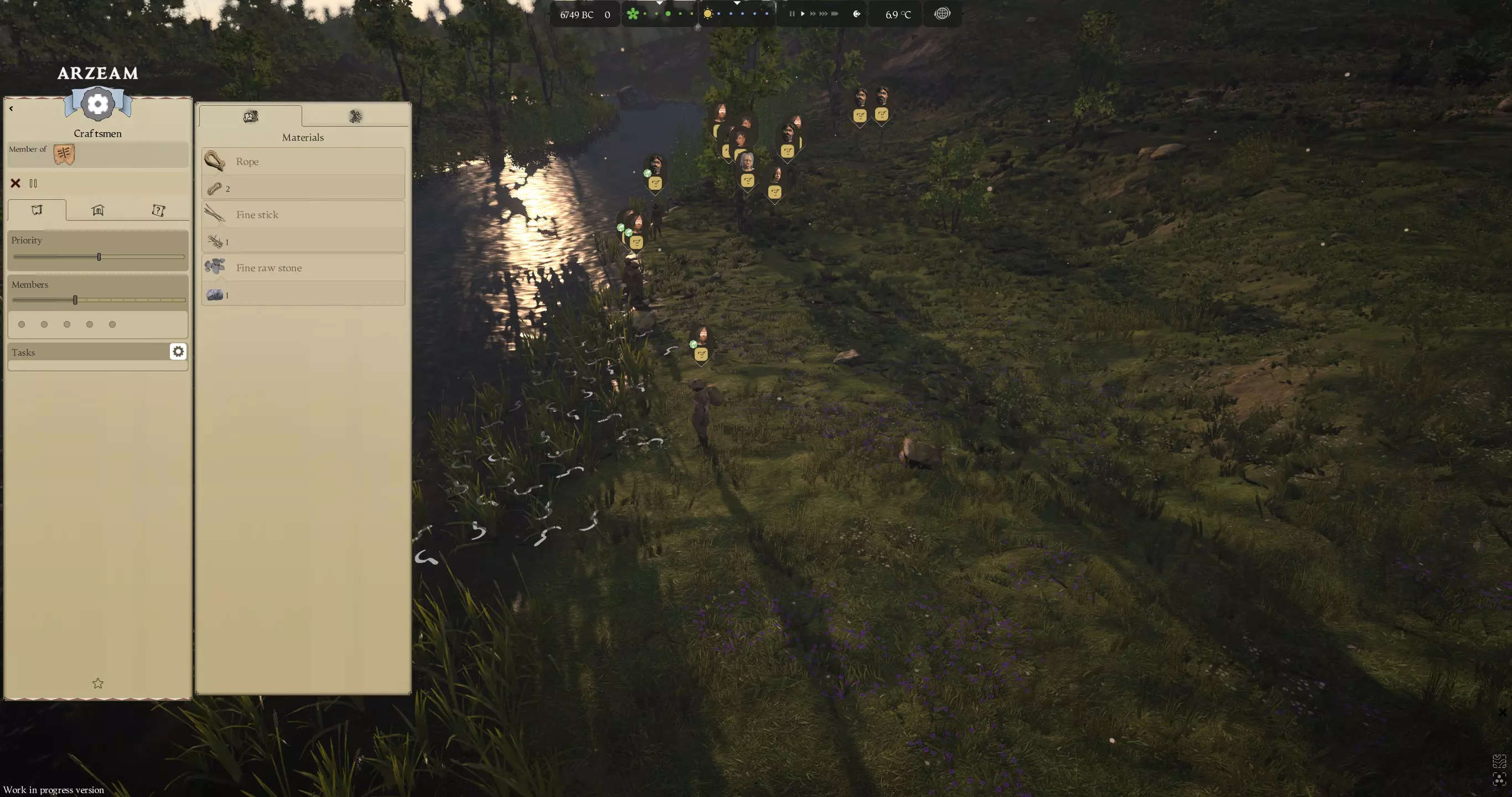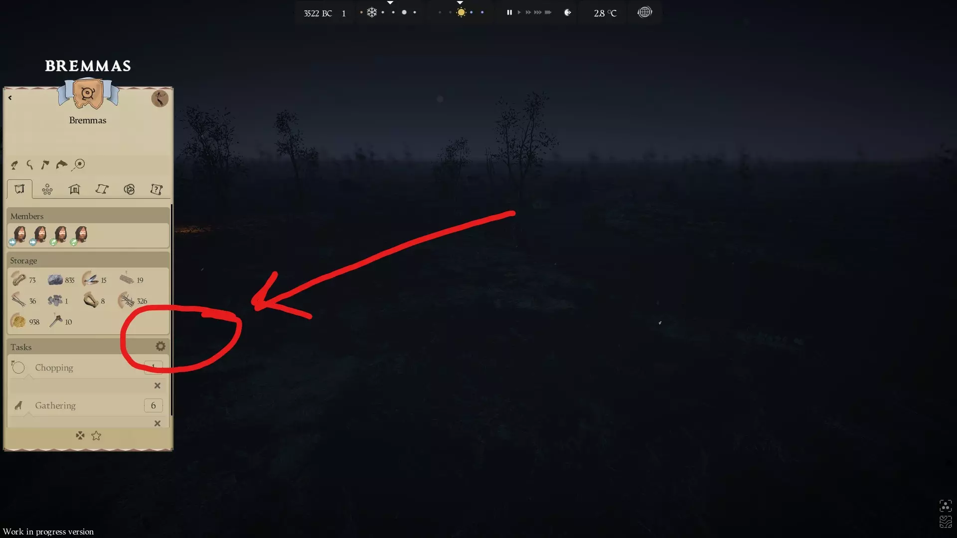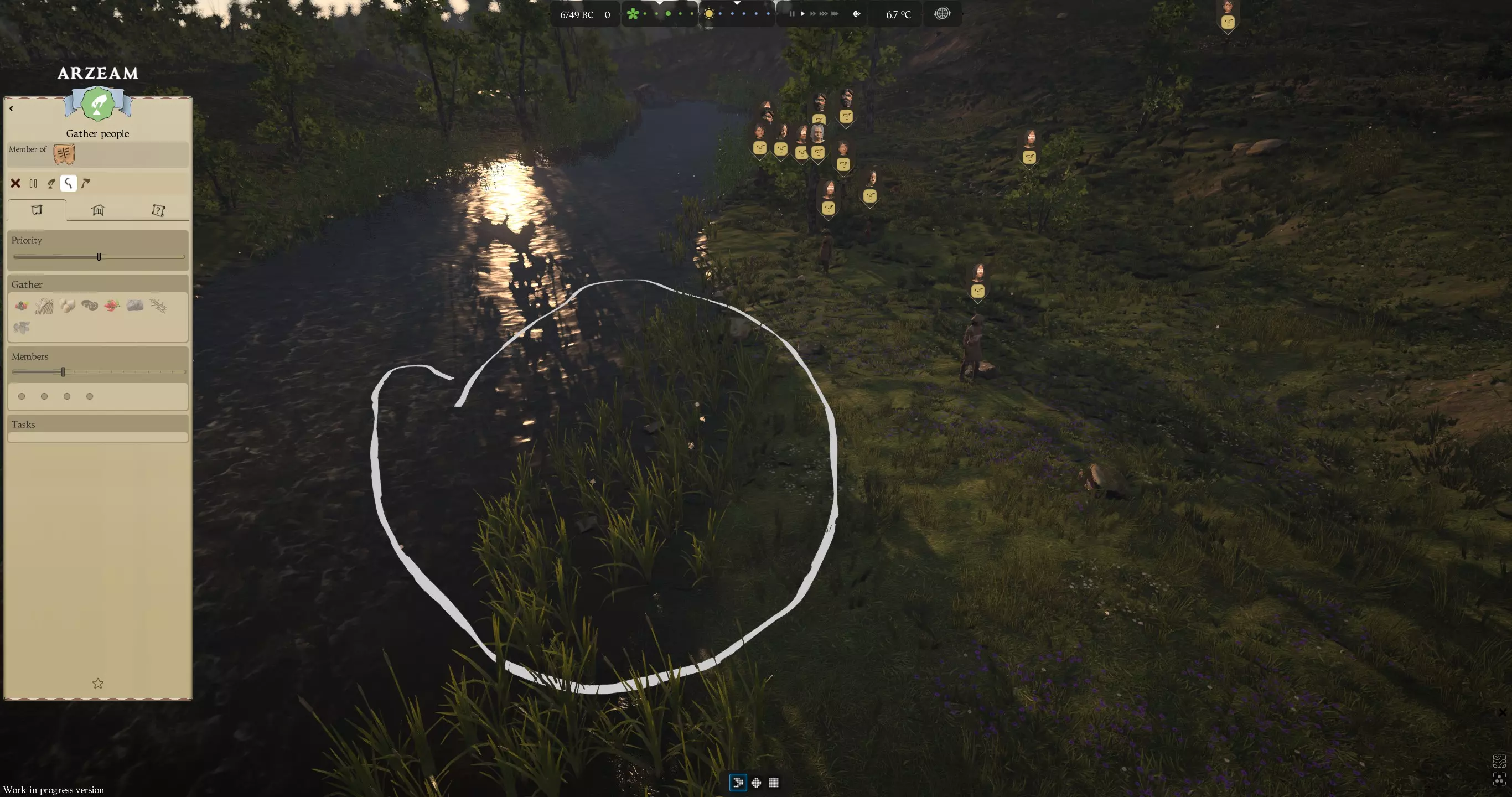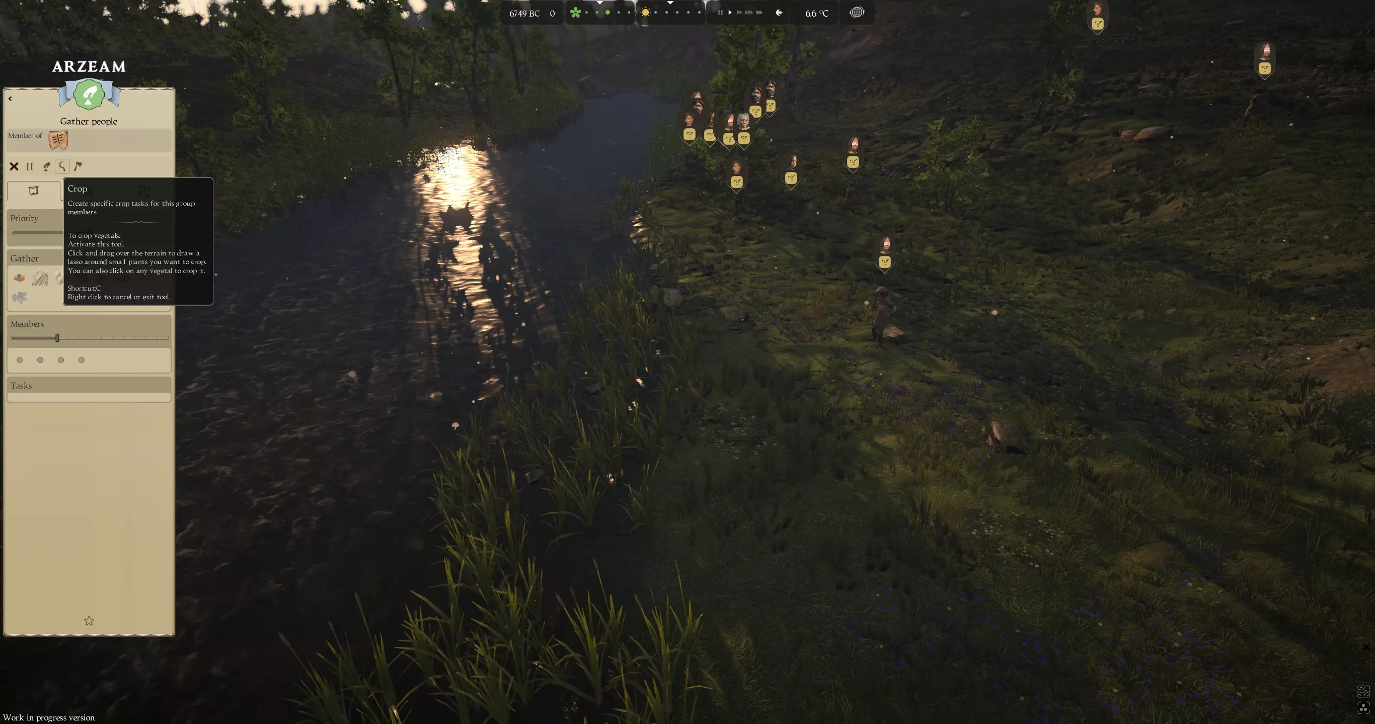 使用你的采集队收割芦苇。确保滑动成员条来分配你想要多少人去采集芦苇。点击镰刀。