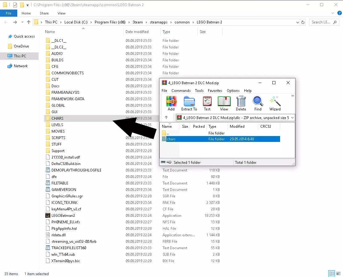2.打开下载的压缩包,并将新文件解压到你的游戏主文件夹中。只需将chars文件夹中的文件放入你的chars文件夹,操作就完成了。
