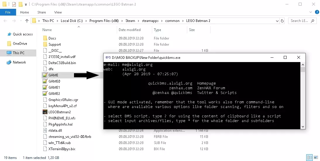 步骤2:提取 1. 插入ttgames.bms后,程序会要求选择压缩包,请选择以下文件: 位于C: Program Files (x86) Steam steamapps common Lego Batman 2路径下名为GAME.DAT的文件