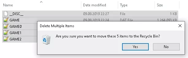 5.为继续操作,请从游戏文件夹中删除以下所有文件: 现在,请从游戏主目录中删除那些.dat文件以及__DISC__文件。