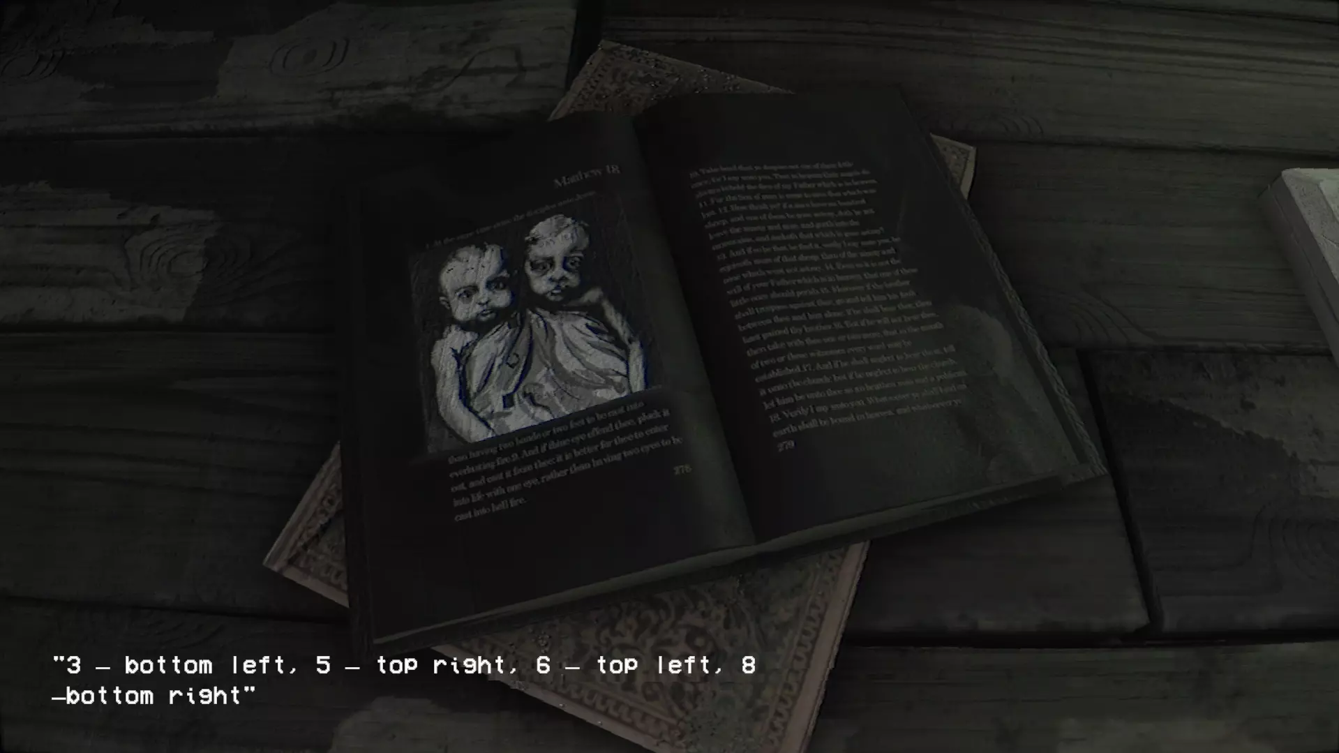 在那本布满灰尘、呈矩形的书上,使用照片。之后,你将获得新知识:【3-左下角,5-右上角,6-左上角,8-右下角】