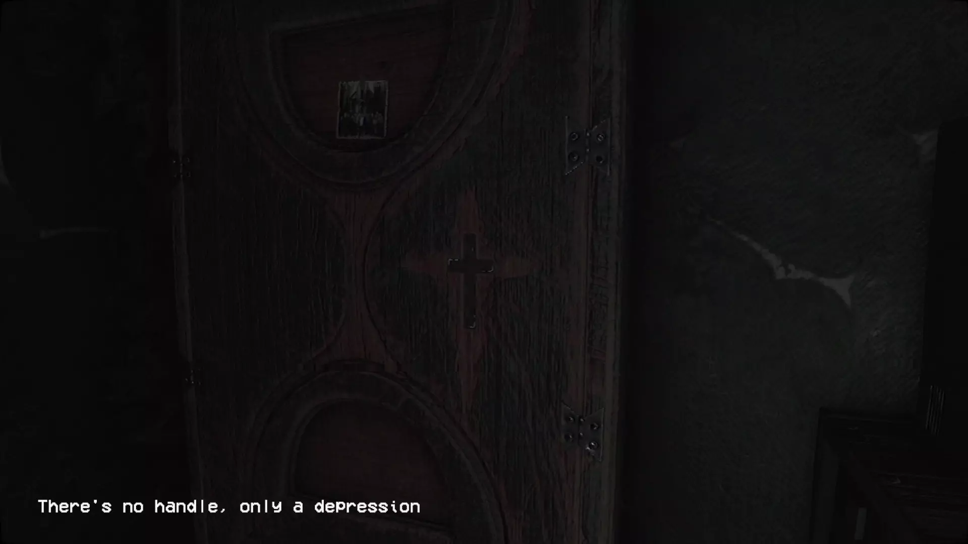 过场动画结束后,歌曲将继续播放。在歌曲结束前,你处于安全区域。歌曲结束后,哭泣者将重新激活。利用这段时间熟悉周围环境。 十字凹槽橱柜: 有一个奇怪的橱柜,看起来很重要。你需要打开抽屉。为此,你需要一个十字形状的物品。