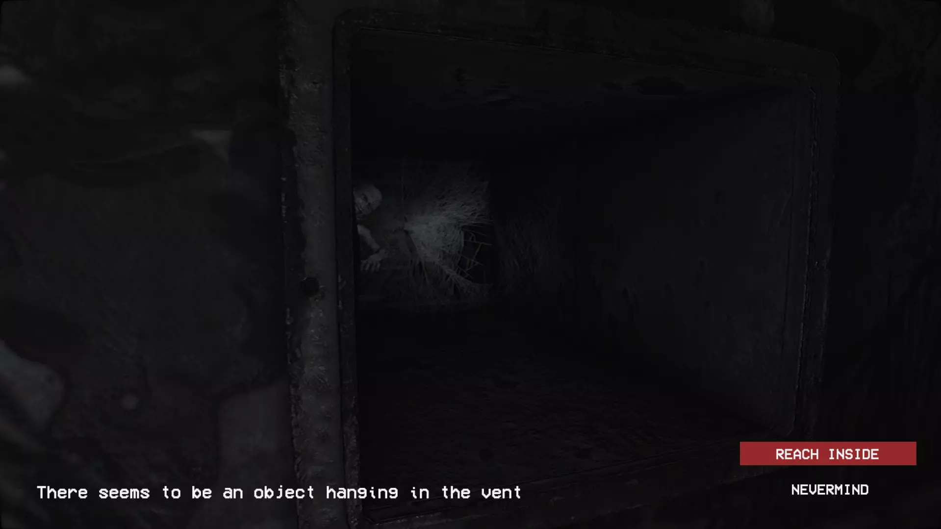 使用螺丝刀打开通风口。里面太黑了,你无法进入。该怎么办?按F键检查内部。你会看到里面有东西。如果打开手电筒点击它,会出现两个选项。选择【伸手进去】选项。