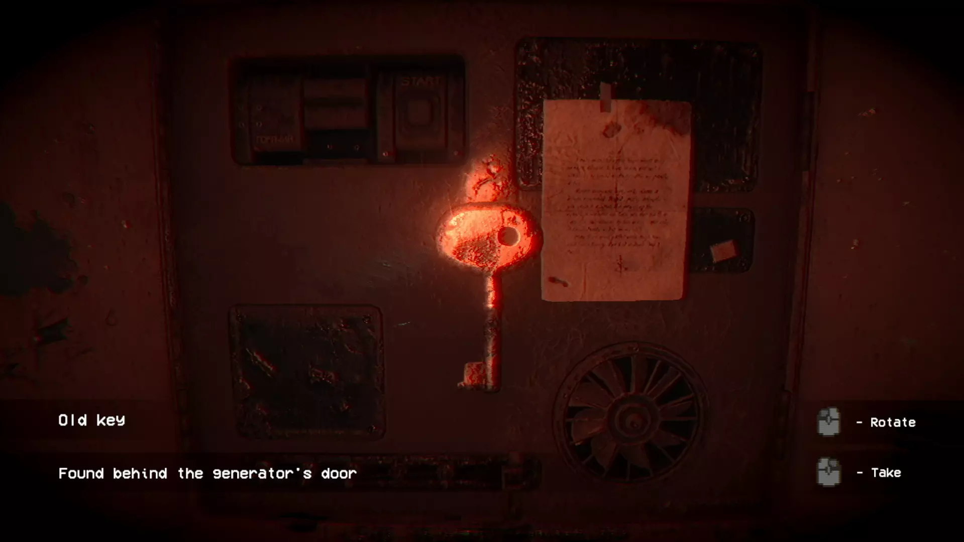 开关: 检查右侧的柜门。你会看到绘制的五条线(包括钥匙孔)。用这个来打开右侧的门。拿到钥匙并将其用于柜门上。