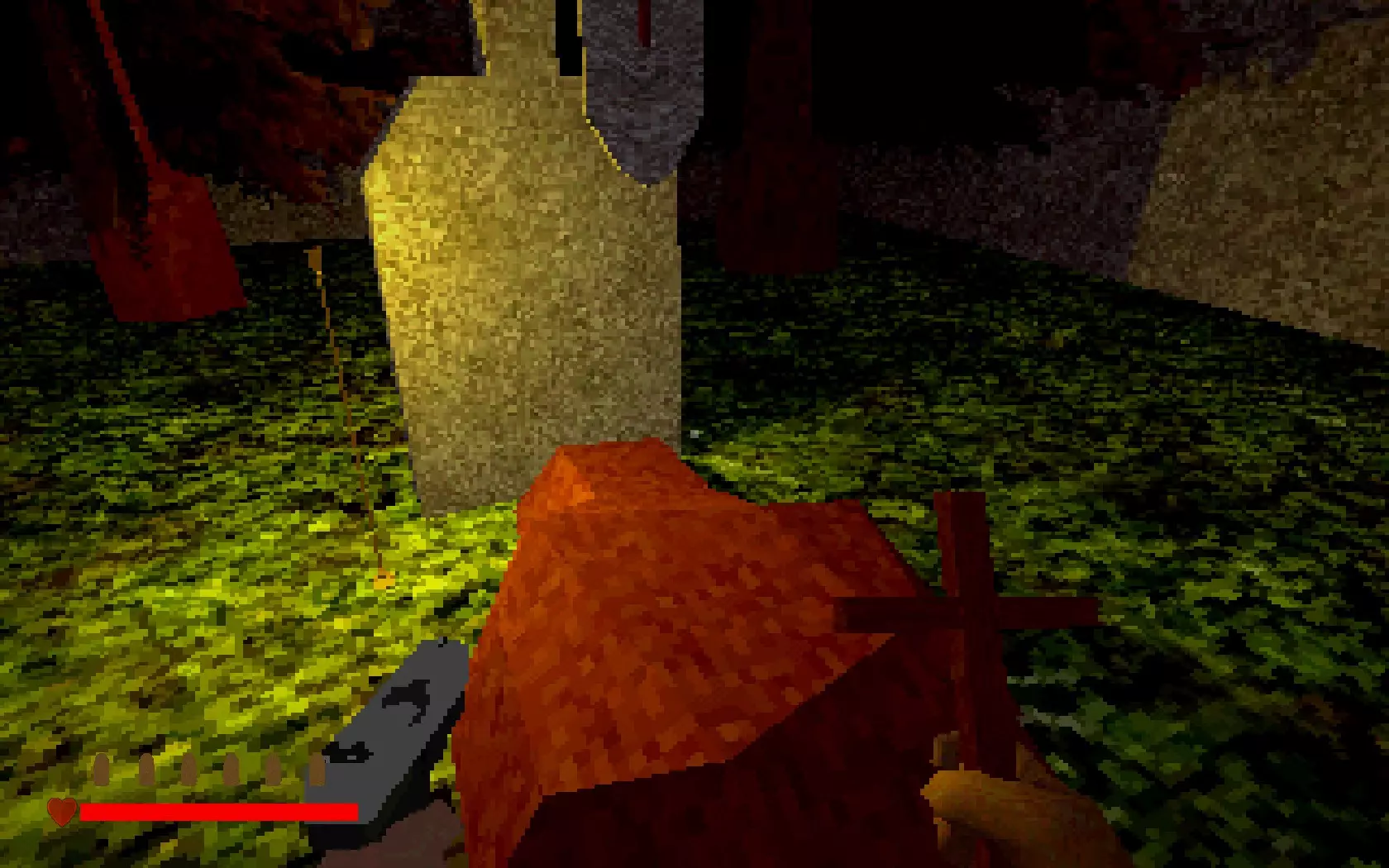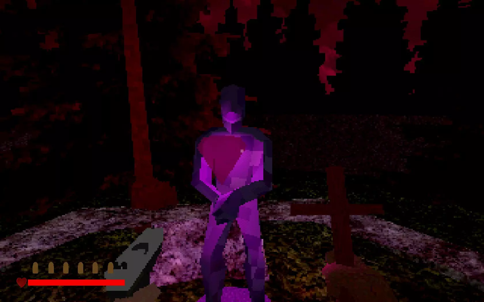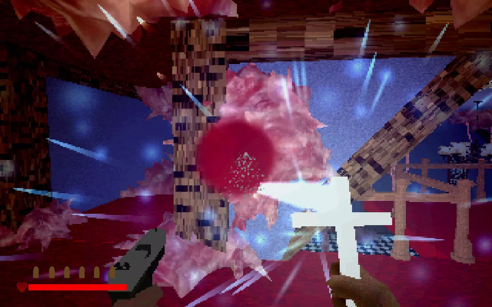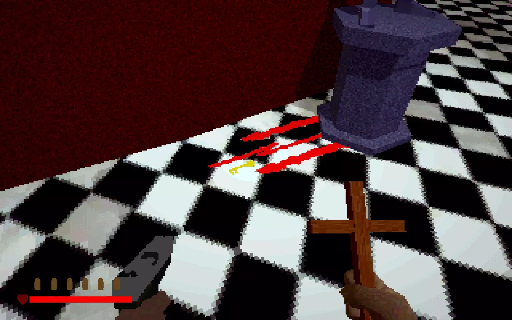 神父自由了……但恶魔现在已挣脱束缚,进入了屋内。走出房间,你就会明白这意味着什么。墙上长出的肉块是恶魔挣脱后的副作用。你可以用十字架清除这些肉块!瞄准它们并按住右键,直到其燃烧殆尽。
