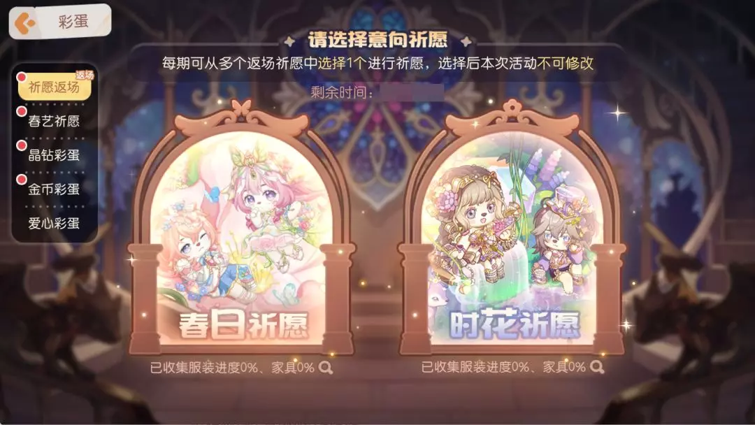 活动介绍:「春日祈愿」和「时花祈愿」双双限时返场,小奥比们快来pick心仪的那一款彩蛋吧~