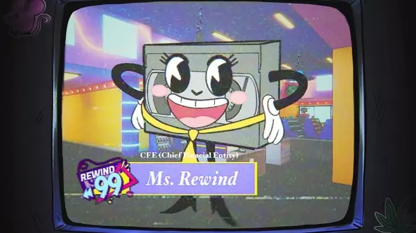 这是一则《Rewind 99》的游戏视频介绍,展示了游戏里经营店铺的相关内容,包括为店铺解决竞争的RentNet机器、为顾客结账、退回录像带倒带等玩法,还呈现了游戏内的城市场景。