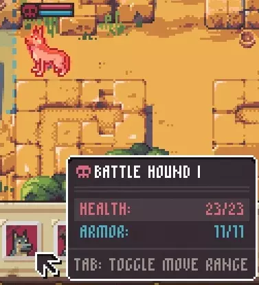 生命值:23(变体I);34(变体II);46(变体III) 护甲:0 移动范围:12格 武器:撕咬,造成约10-23点伤害(变体I)。这个范围很大——或许23点伤害是暴击撕咬? 备注:12格的移动范围十分恼人。如果你觉得自己处于攻击犬的攻击范围之外,那很可能是错的! 初期你或许想优先消灭那些造成更高伤害的敌人,暂时跳过这种敌人;但如果你的角色穿着轻型护甲,或者受伤的角色靠近这些狗,那么你可能需要优先将它们消灭。 狙击手的伏击(守望)也能阻止狗的行动,即便射击未命中。 战斗猎犬