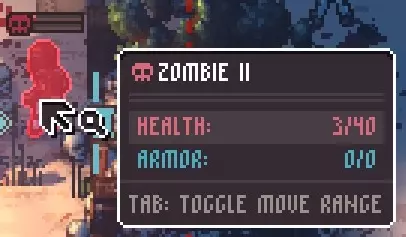 生命值:36-40(变种II) 护甲:0 武器:徒手攻击,造成约12点伤害 特殊能力:可消耗一具僵尸尸体,恢复约20点生命值 被动能力:若角色从相邻格子发起攻击,僵尸将进行强力近战反击(变种II僵尸反击伤害约24点)。除非确定能一击消灭僵尸,否则不建议近距离攻击。