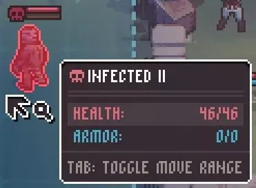 生命值:46(变体II);57(变体III) 护甲:0 武器:绿色远程呕吐攻击,造成约25-27点伤害 特殊被动技能:死亡时爆炸,对所有相邻格子的友方或敌方单位造成溅射伤害。因此不要用近战攻击来终结感染者。注意:感染者变体III死亡时的爆炸半径可对最多两格范围内的目标造成伤害。 备注:注意感染者的爆炸死亡也会对敌人造成伤害,因此请尽可能利用这一点。 孢子携带者