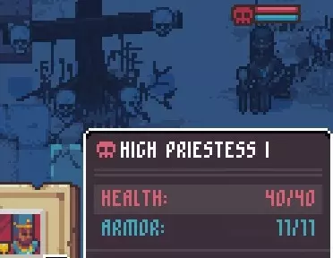 生命值:36-40(变体I) 护甲:10-11(变体I) 武器:燃烧瓶,对多个目标造成约11-16点伤害(取决于教徒变体),教徒变体II和III造成的伤害更高。其影响范围约为9格区域。 备注:教徒拥有极长的移动范围,并且能将其爆炸性范围伤害的燃烧瓶投掷到极远的距离。 与教徒战斗时,尽量避免让角色聚集在一起。这样他们的爆炸性攻击就只会伤害到你的一名角色。 高阶女祭司