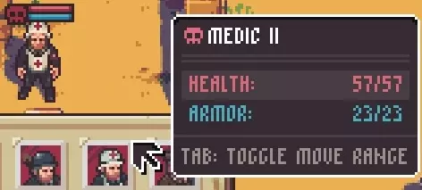 生命值:23(变种1) 护甲:11 武器:锋利牙齿:-) 对被咬中的角色造成流血(持续伤害)效果。 备注:该变种狗因护甲而变得稍微坚韧一些。其移动范围仍会让你抓狂。另请注意,少量的护甲意味着其生命值与护甲之和恰好等于普通攻击犬的总生命值。 医疗兵