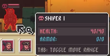 生命值:40(变体I);51(变体II);63(变体III) 护甲:11(变体I);23(变体II);34(变体III) 移动范围:9格 武器:霰弹枪,可在较近范围内对多个目标造成范围(锥形)伤害。 备注:尤其是其突击队员III变体,就生命值和护甲数值而言,是游戏中最棘手的敌人之一。 狙击手