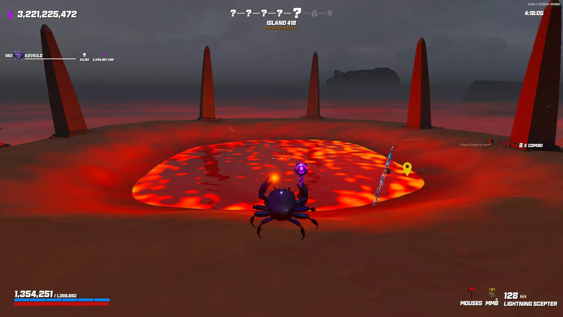 支柱竞技场,右后方区域接触熔岩