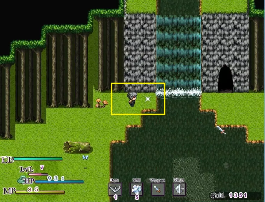 然后一直往西走,直到到达图片中的瀑布(站到光点上,如果没有掉落钥匙就按下动作键)