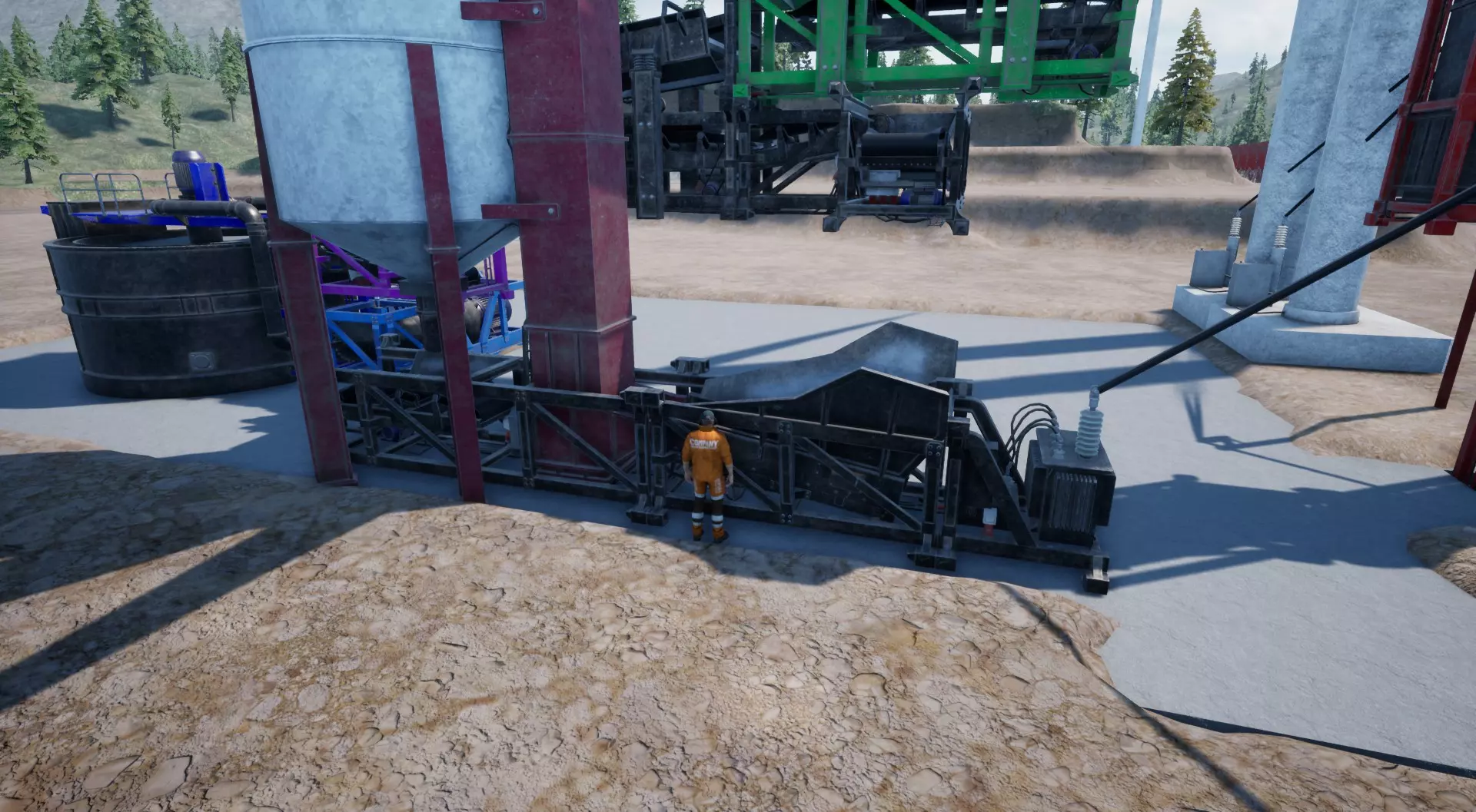 完成这些操作后,我们现在可以放置洗矿机和滚筒筛了。别忘了在它们之间放置2米长的管道,否则后续的出售点将无法匹配。
