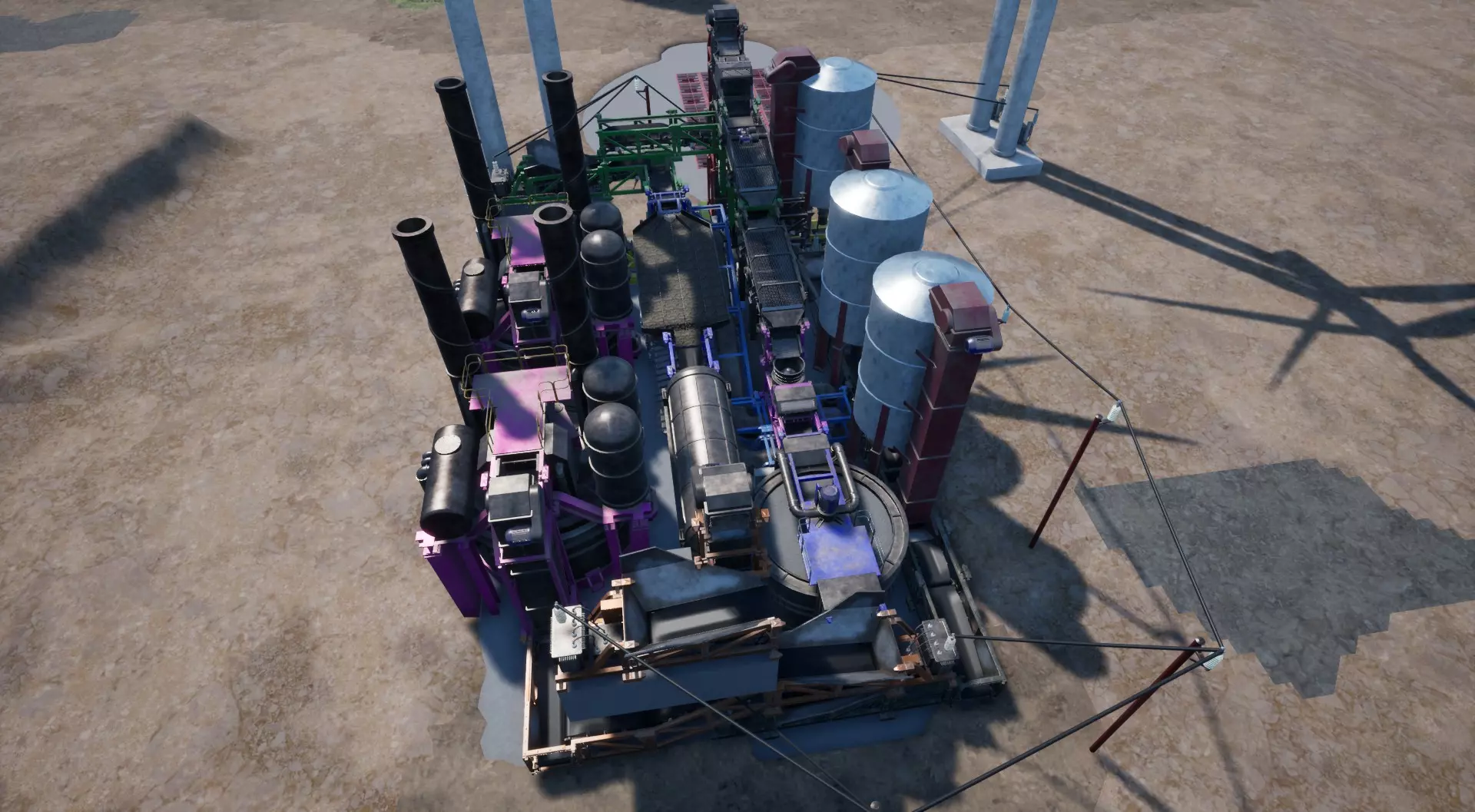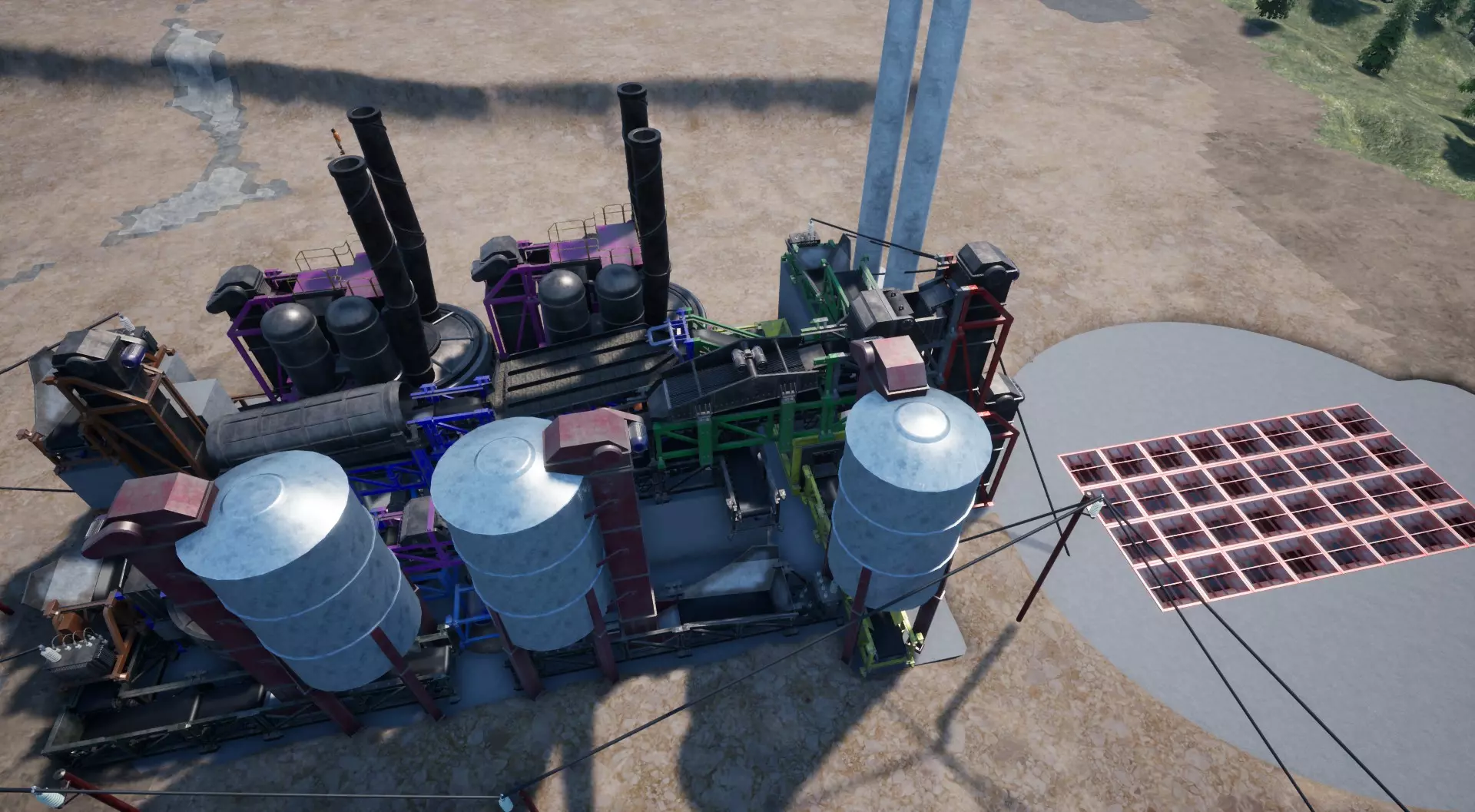 我们的第一部分已经完成了。 煤炭分离 现在我们来建造用于分离煤炭的部件——详见截图: 将电力电缆连接到另一个电网(不是我们放置主电源输入(料斗)的那个电网)。