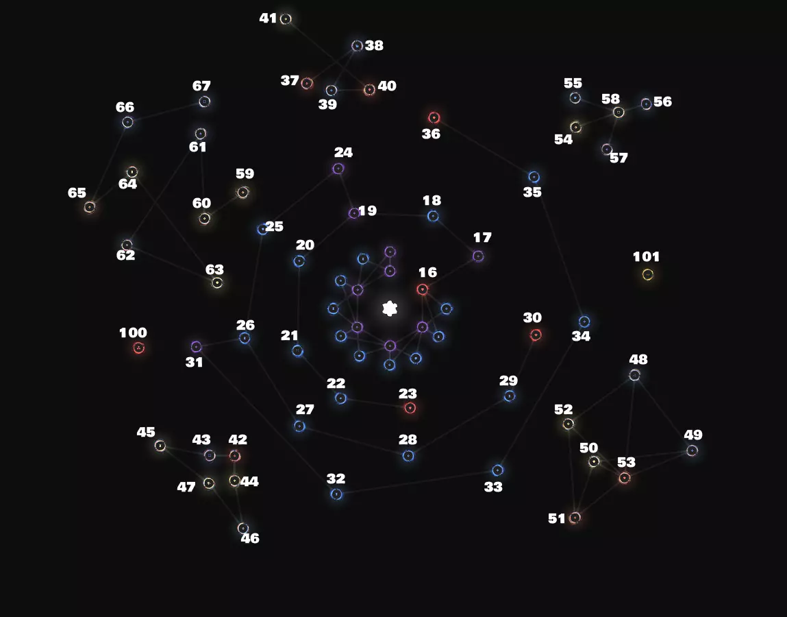 这是《带编号传送门的枢纽》1.1.0新旧版本的传送门枢纽分布图,图中展示了不同编号、不同颜色的传送门节点,节点间以线条相连,呈现出枢纽式的传送门网络布局,可对比新旧版本传送门的分布差异。