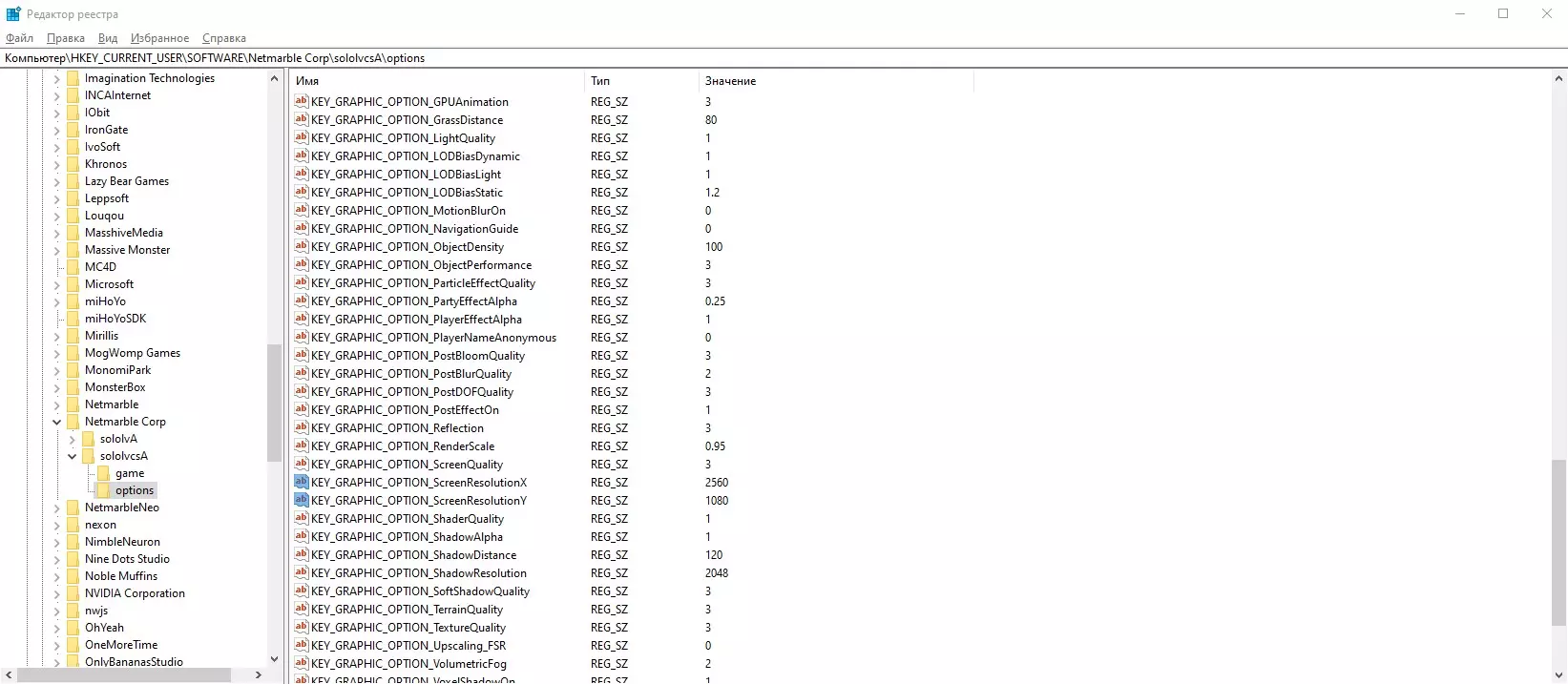 之后,我们找到两个名为【KEY_GRAPHIC_OPTION_ScreenResolutionX】和【KEY_GRAPHIC_OPTION_ScreenResolutionY】的注册表项,将其数值更改为适合你屏幕的值!然后保存即可!这样就能在宽屏显示器上全屏游玩了。