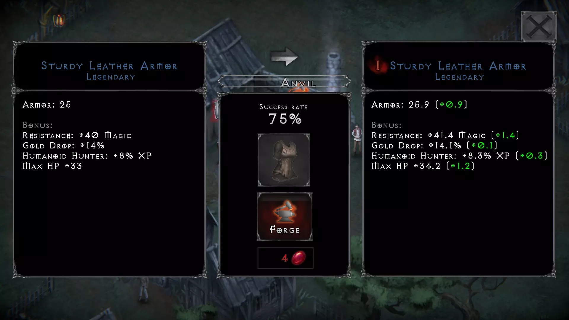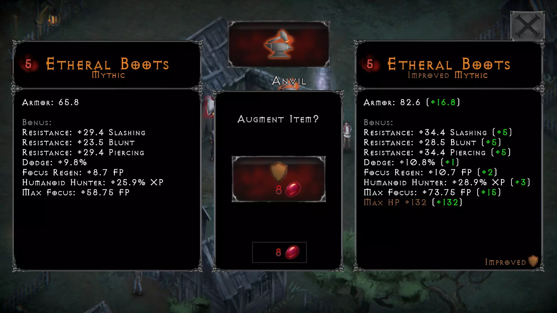血石是游戏中相当酷的一部分。它们可以像药水一样制作——每次制作2个,并且在野外击败生物/敌人后有几率随机获得。每块血石都可以在城镇的铁砧处使用,以提升装备的属性。提升装备的成功率通常初始为70%,且每次尝试提升后都会降低,这就需要你制作更多的血石。 如果你要更换已使用血石提升过的装备或武器,可以在铁砧处取下血石。在出售已强化的装备前这样做,就能取回你用于强化它的血石。 在 inventory 中查看时,被血石强化过的装备,其图标框上会有一个小红标记。 翅膀