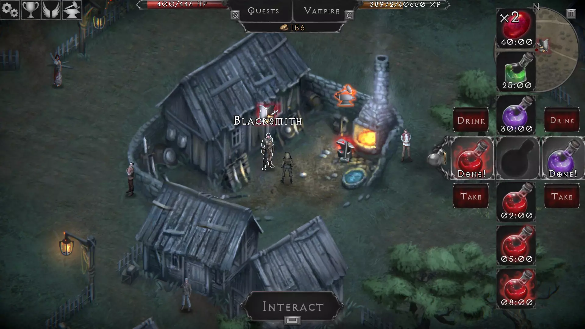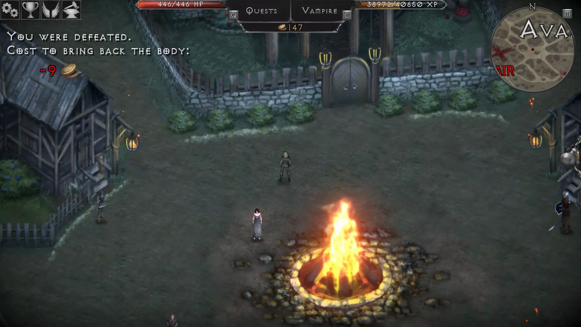 在这款游戏中,你会死很多次。当你开始熟悉战斗系统并找到适合自己的方法时,你可能会死亡。你可能会误入错误的洞穴,然后被生命值是你四倍的野兽一击或两击秒杀。这种情况我们都遇到过。当你死亡时,你会被传送到最近的城镇或友好NPC处,并且会损失一些金币——这是复活的代价。 与《暗黑破坏神》或《魔兽世界》不同,你的物品和武器没有耐久度,所以你不必花钱修理。这是个很大的优点。 复活所需的费用确实会上涨——我现在每次复活需要10金币。 如果你没有【蝙蝠药水】来传送回城镇,死亡是一种在附近定居点重生的廉价方式。 制作 - 药水
