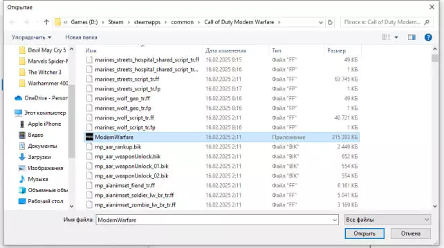 现在再次点击【添加例外】并选择【文件】,然后进入游戏文件夹,找到名为【Modern Warfare.exe】的文件,将其添加进去。