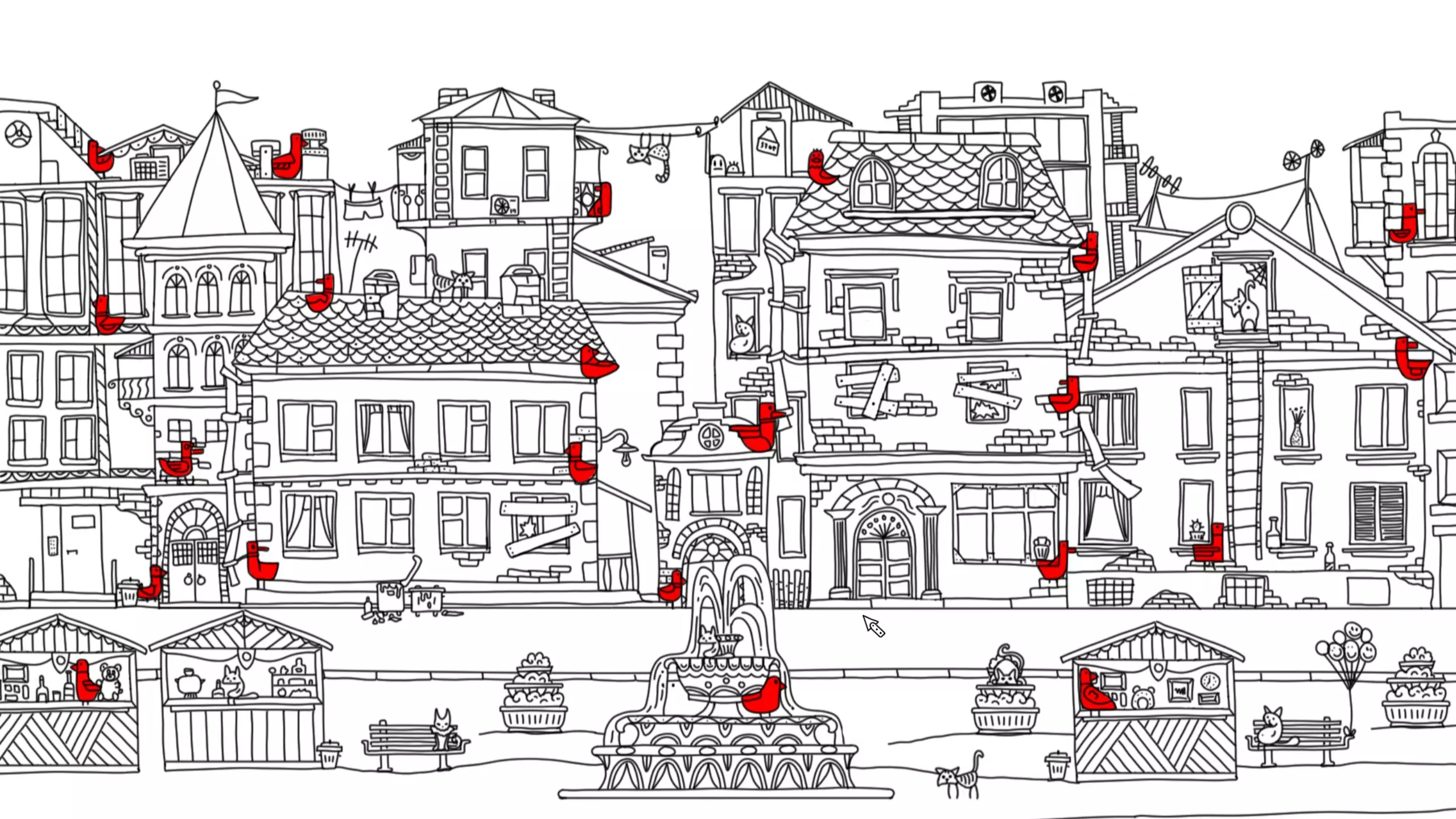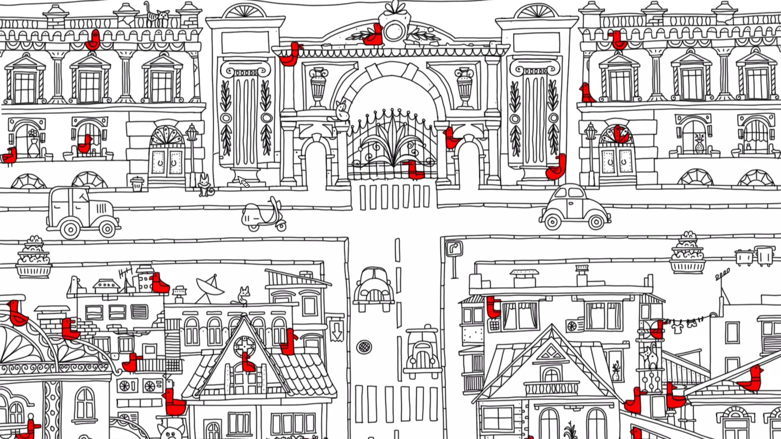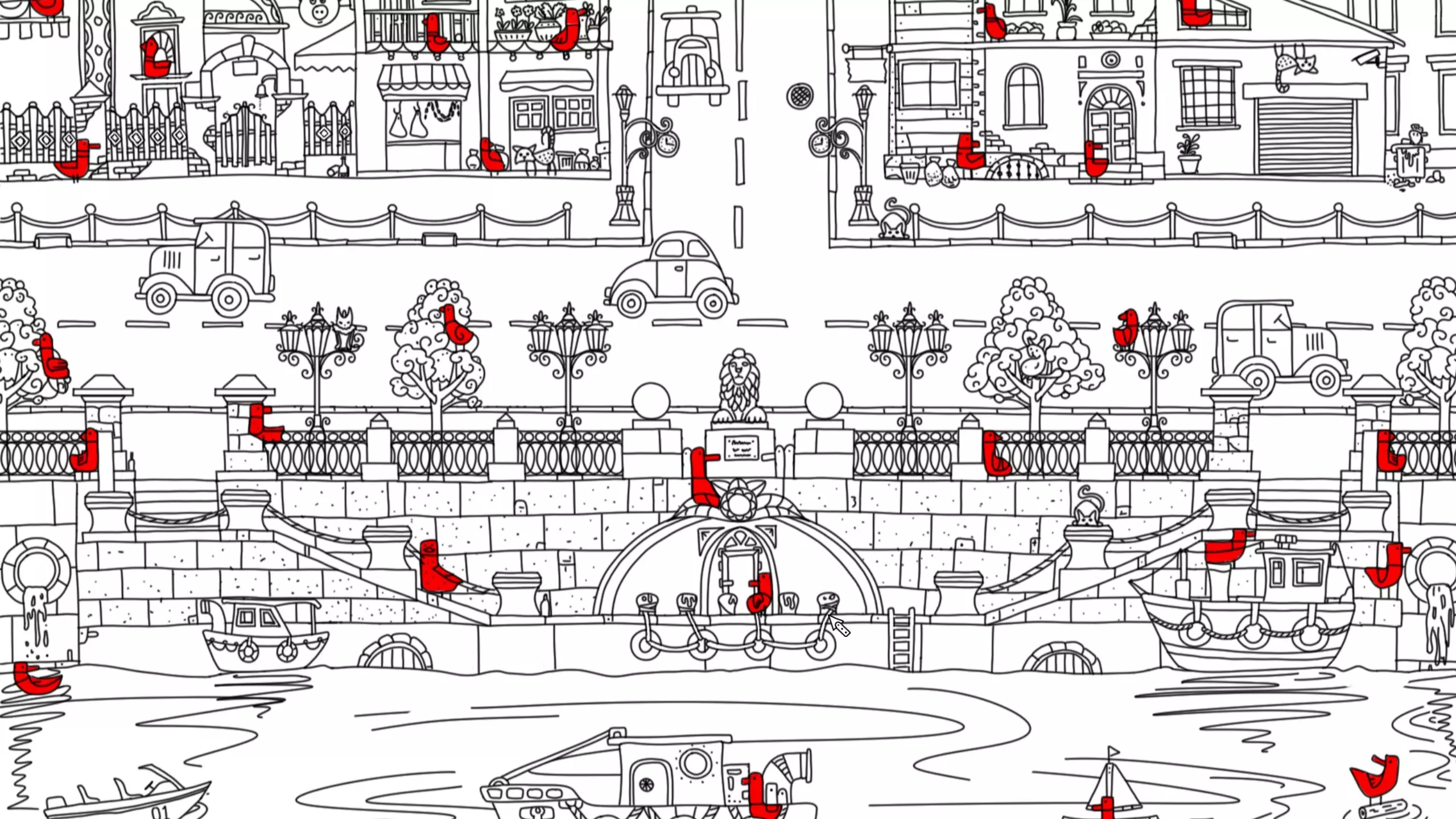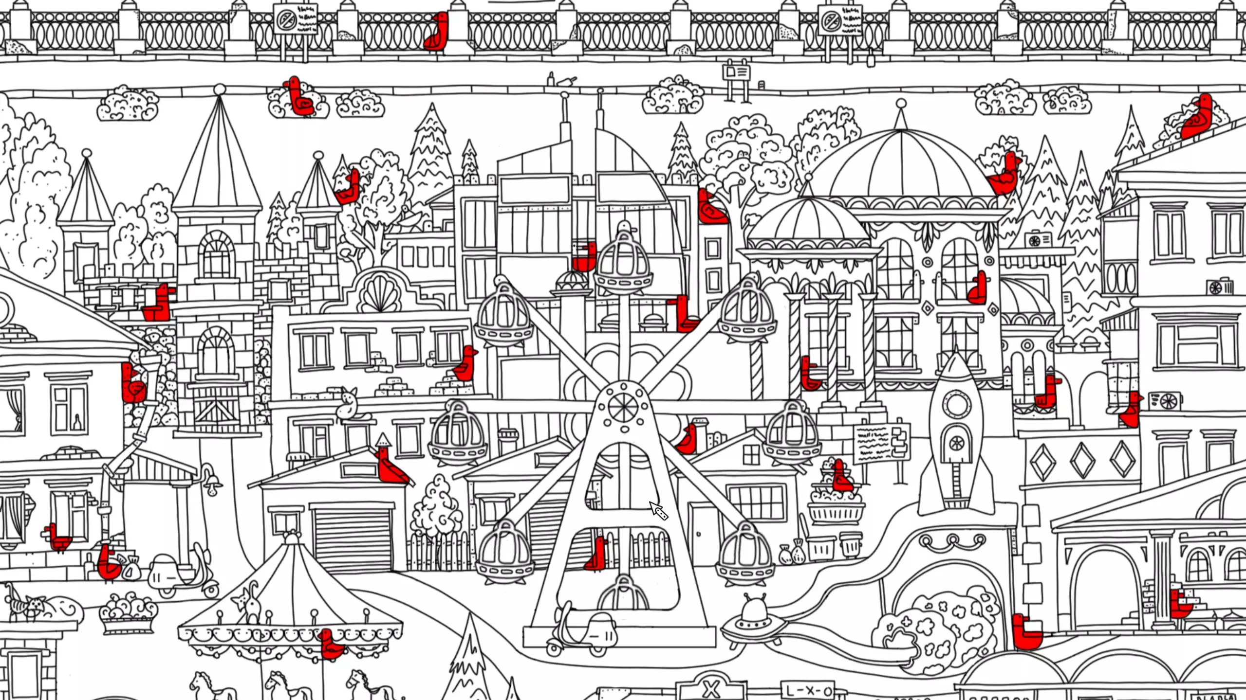 这组《100只隐藏的鸟》主题图,在城镇、游乐园、水岸、复古街区等不同场景的手绘插画里,藏着众多红色小鸟,是一款找隐藏元素的视觉游戏,考验玩家的观察力。