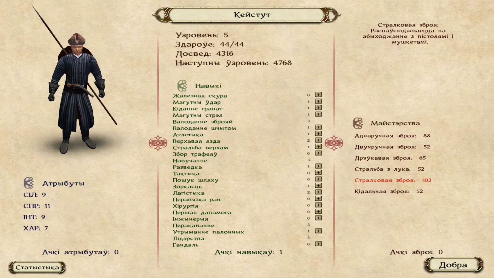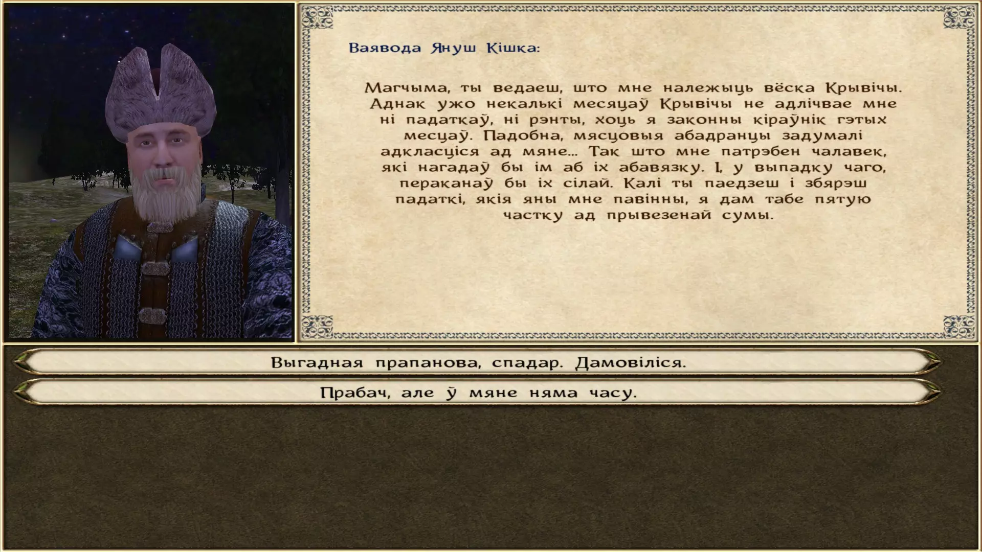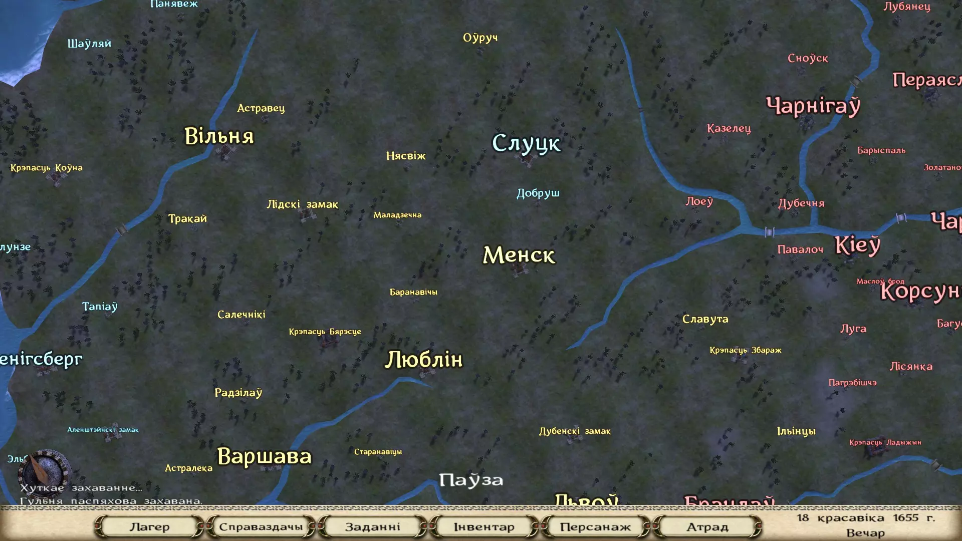 《骑马与砍杀:火与剑》游戏全文翻译 说明 1.下载本地化文件 2.将4个文件夹(Modules、languages、Data、Textures)解压到游戏根目录,路径为:...Steam steamapps common Mount & Blade With Fire and Sword(或根据您的发行版本解压到相应目录) 3.启动游戏。通过启动器在设置中选择斯洛伐克语(Slovenscina)。点击“确定”按钮,启动器界面将显示为白俄罗斯语拉丁字母。 4.请按下【开始游戏】按钮。游戏本身将以白俄罗斯西里尔文启动,祝您享受游戏时光!