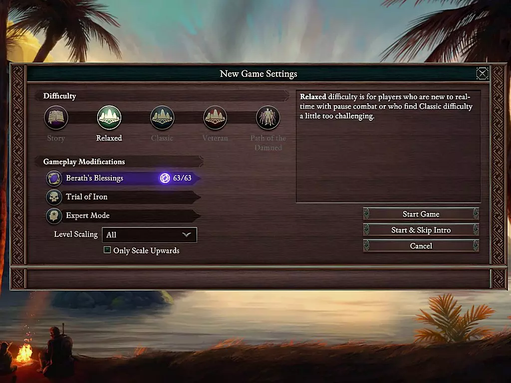 - 设置 - 游戏内描述 备注 故事 - 战斗难度极低 -> 不值得体验 休闲 - 战斗难度较低 -> 较为枯燥 经典 - 标准战斗难度 -> 非常适合新玩家 老兵 - 敌人数量更多且战术更具侵略性 -> 是RPG老手的理想挑战 受诅之路 - 敌人数量最多,遭遇战强度更高,AI会针对玩家 -> 不公平+令人沮丧+不切实际 (+25%生命值,+15准确度,+15全防御,+2护甲等级,+2穿透) 调整项: 贝拉斯的祝福 - 可选择使用前一轮游戏获得的成就点数 钢铁试炼 - 仅允许一个存档!专家模式 - “辅助”功能已禁用 *难度缩放:影响所有遭遇战 特殊挑战 三冠王 - 钢铁试炼 + 专家模式 + 最高难度 solo - 无同伴 神明挑战(玛格然之火)