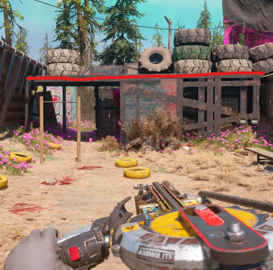 有问题的金属栏杆 从突击手最初站立的平台处射击。理想情况下,敌人会试图冲向平台,而不是离开战斗区域。 若不想通过下水道出口或快速旅行离开战斗区域,可跳上图片中标红的平台。在火力不足时,可利用该平台逃生。