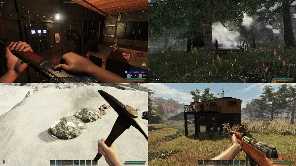 这款游戏作为生存建造类游戏,“活下去”的难度非常高。个人感觉即使是简单模式,也相当于其他同类型作品的“普通~困难(甚至更高)”难度。 由于很多同类游戏的“常规玩法”在这里并不适用,因此游戏刚开始的初期阶段,大致从第一天到一周左右的难度尤为突出,哪怕是微小的失误或理解偏差都可能导致死亡。在游戏的开局部分屡屡受挫、多次死亡,因惩罚导致很难重新开始,很可能会让人觉得“只会积累压力”“还不如重新开新游戏更快”……因此,我想介绍一下自己实践过的“顺利度过最初期阶段、找到进入正轨头绪的方法”。 ※ 为了不减少游戏乐趣,解说仅停留在“找到初期生存下去的头绪”为止。 ·开始之前 【开始之前】 首先,记住以下几点,能提高生存率。■ 无需在意教程 菜单左上角显示的教程项目,不过是“涵盖了游戏的基本操作”而已,如果一开始就为了迅速完成这些项目而行动,很容易陷入困境,所以可以无视它们。 ■ 与猛兽保持距离 如果看到熊、狼、野猪、美洲狮(类似老虎的野兽),要保持足够远的距离,绝对不要靠近它们。(注意动物的吼叫声,如果听到了要立即离开现场。)现阶段如果受到攻击,十有八九性命不保。 ■ 收集一切可用之物 除了容易获取的木材外,要时刻保持“不错过周围任何素材”的意识,留意四周。不过,铁、铜、钾等矿石暂时用不上,只会占用背包空间,所以现在可以无视它们。■ 食物和水需加热处理 为防止感染疾病,入口的水和肉必须用营火加热一段时间,将脏水进行【净化】,生肉加热至【中等熟度】后再食用(蔬菜和水果可以生吃)。 ■ 暂缓大规模建造 在生存建造类游戏中,建造是乐趣之一,但初期状态下“快速收集材料建造大型基地”是不可能的。 先暂缓建造,短期内只需考虑“活过当天”。 ■ 避免四处游荡 不固定基地,漫无目的地游荡风险极高。在为生存进行“每日例行工作”的同时,要在这个范围内收集物资。总之,要做到“不贪心,把当天当时的活下去作为最优先事项行动”。 初日应做之事: 1. 确定据点位置并进行探索。首先探索周边,寻找池塘。池塘不仅能确保饮用水(从物品栏右键点击空水壶→打水),还生长着作为宝贵维生素来源(后文详述)的“海带”,而且从日后钓鱼和收集素材等角度来看,也是生存的关键,因此在池塘附近建立据点非常重要。接下来,在不迷失选定位置的前提下,一边探索周围环境,一边砍伐树木、采集植物、打开装有各种物资的箱子并收集物资。 在探索时,除非遇到被野兽追赶等非常紧急的情况,否则建议“步行”探索。冲刺不仅会消耗宝贵的耐力,还会加快饥饿值的下降速度,从生存角度来看效率低下。尤其是在初期容易缺乏食物的阶段,要注意“能走的时候就不要跑”。