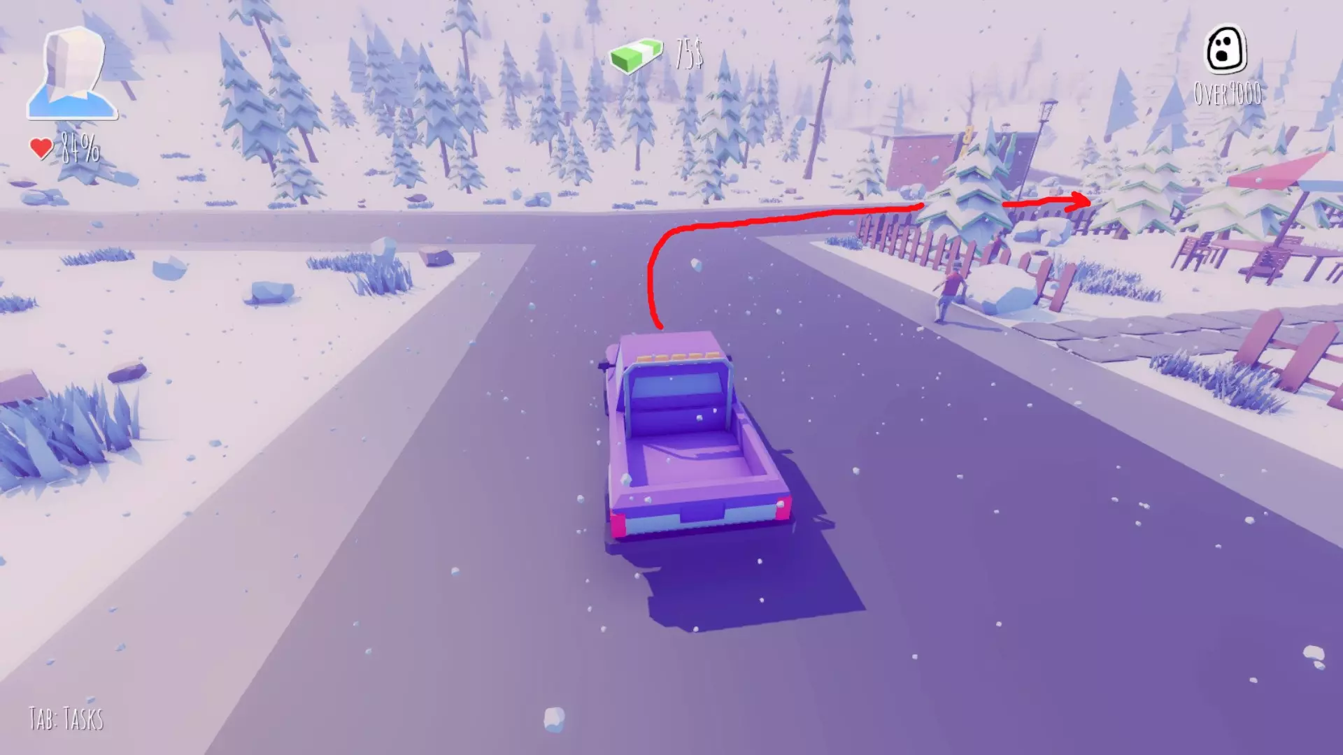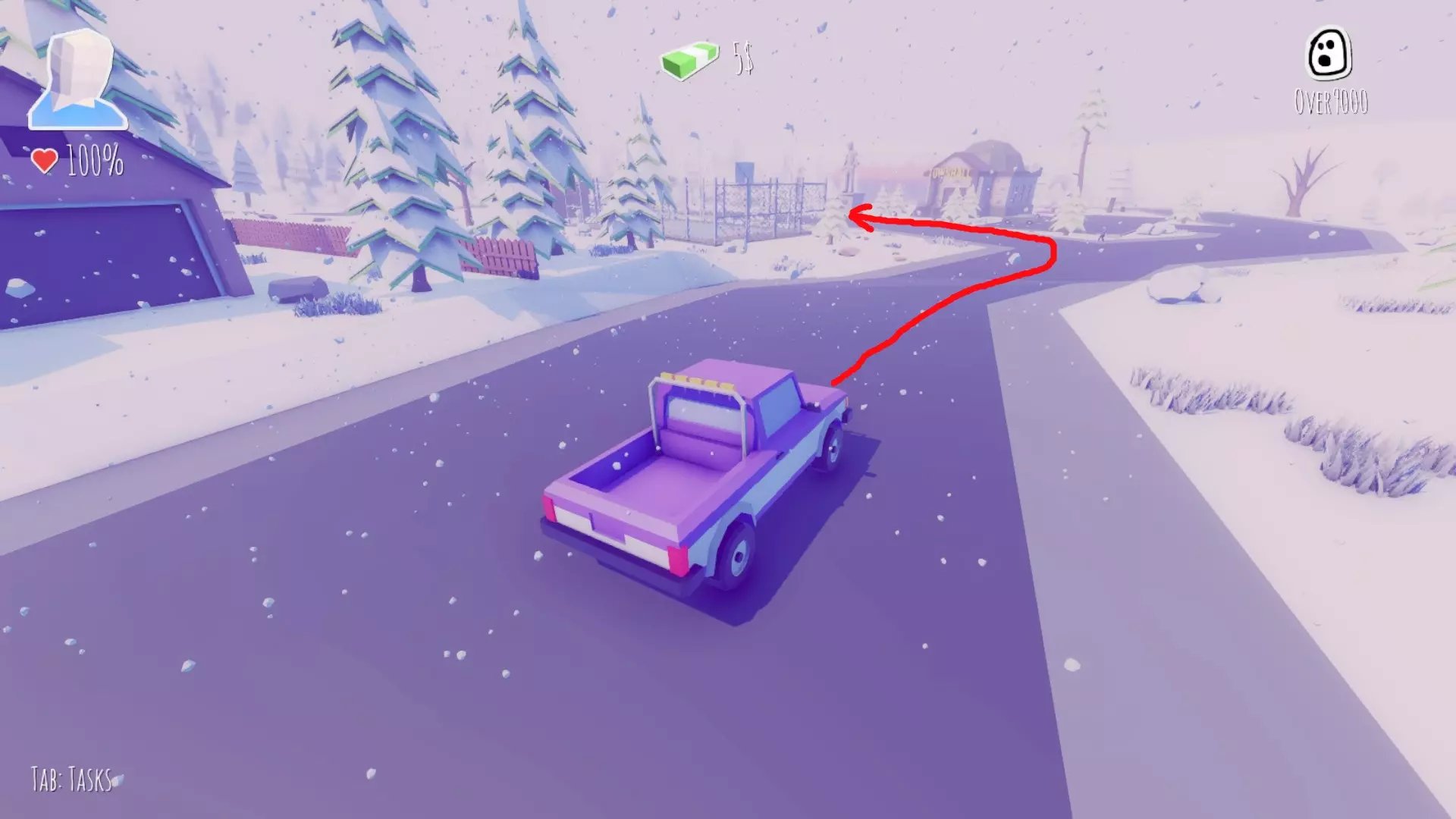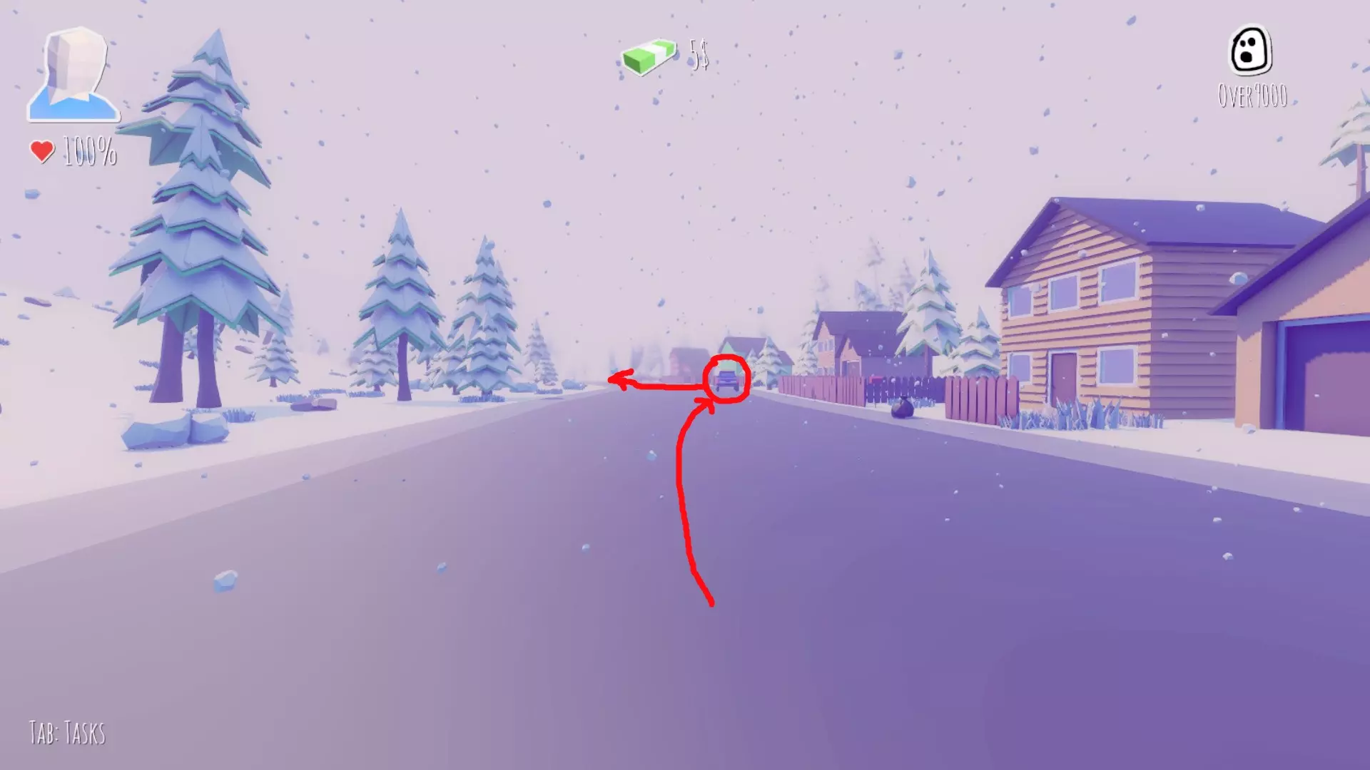 在左转路口停下,用雪球收集50美元。附近可以打篮球。