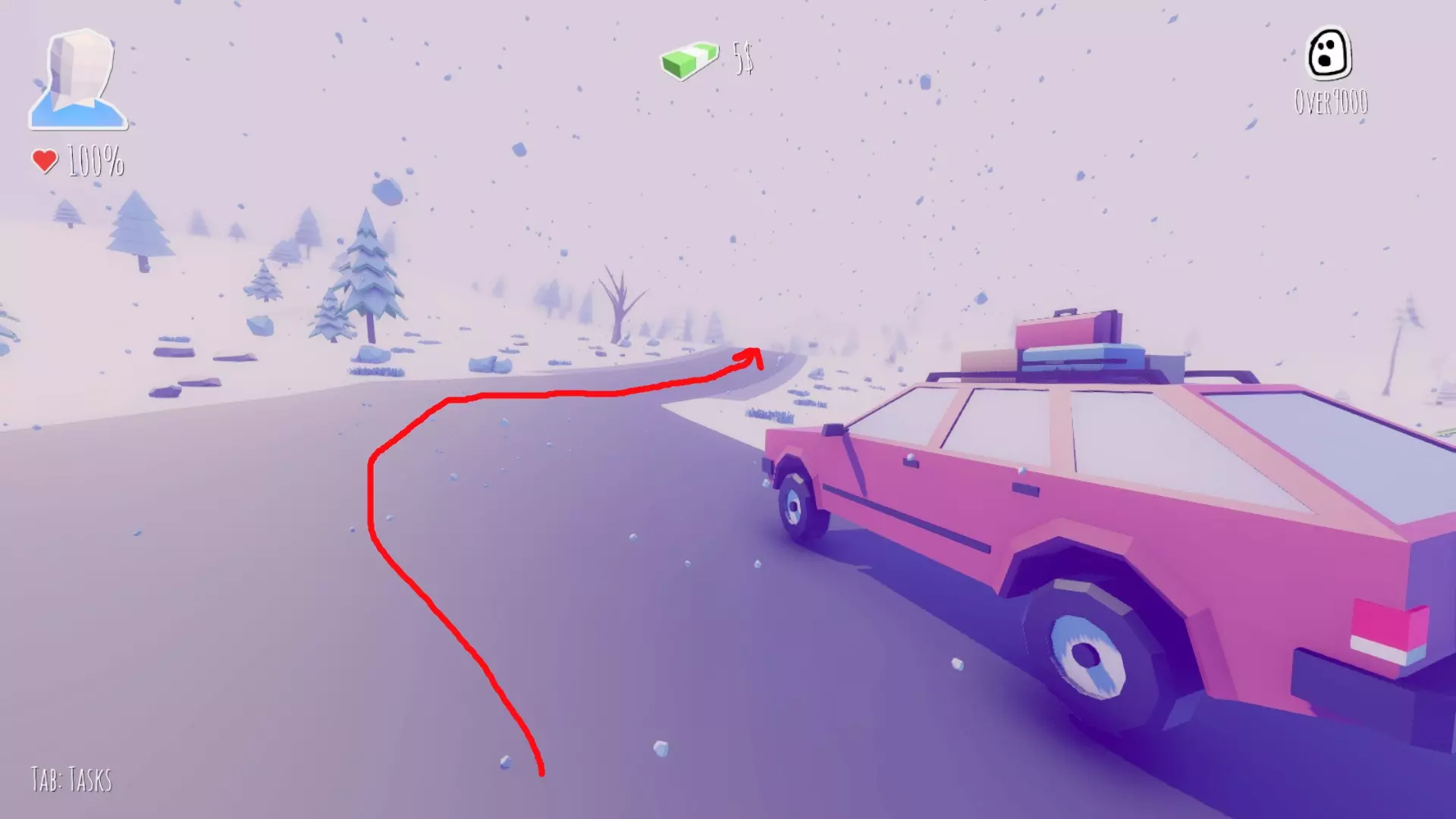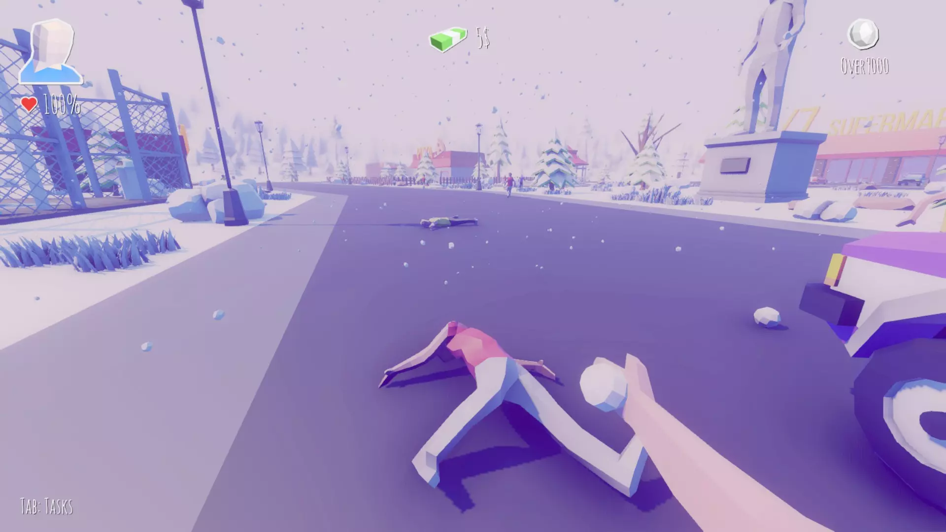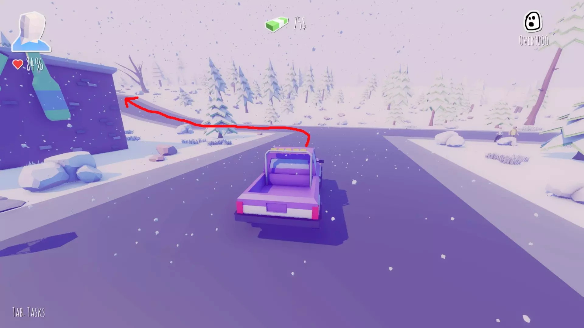 在左转路口停下,用雪球收集50美元。附近可以打篮球。