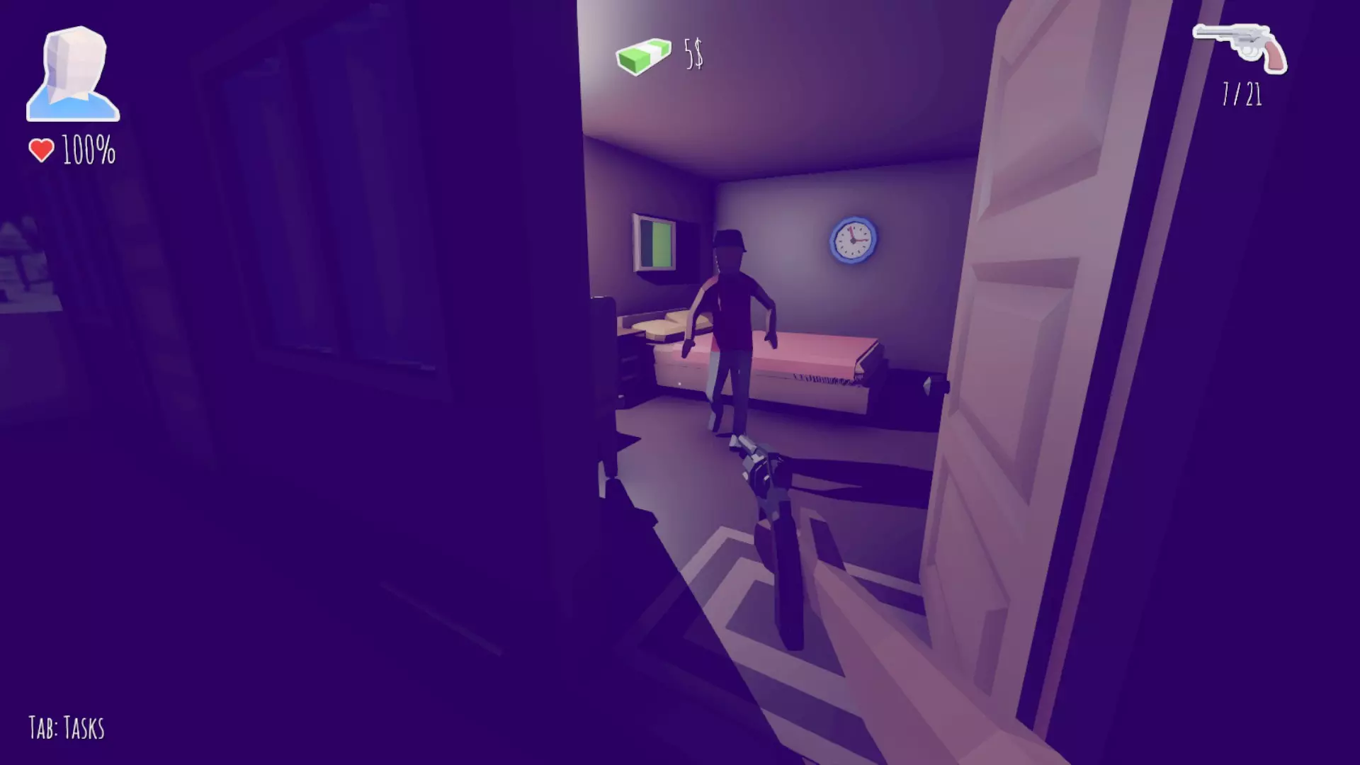 呼噜噜……嗯?不,他简直是疯了!拿起左轮手枪走向邻居,一枪崩了那个混蛋!