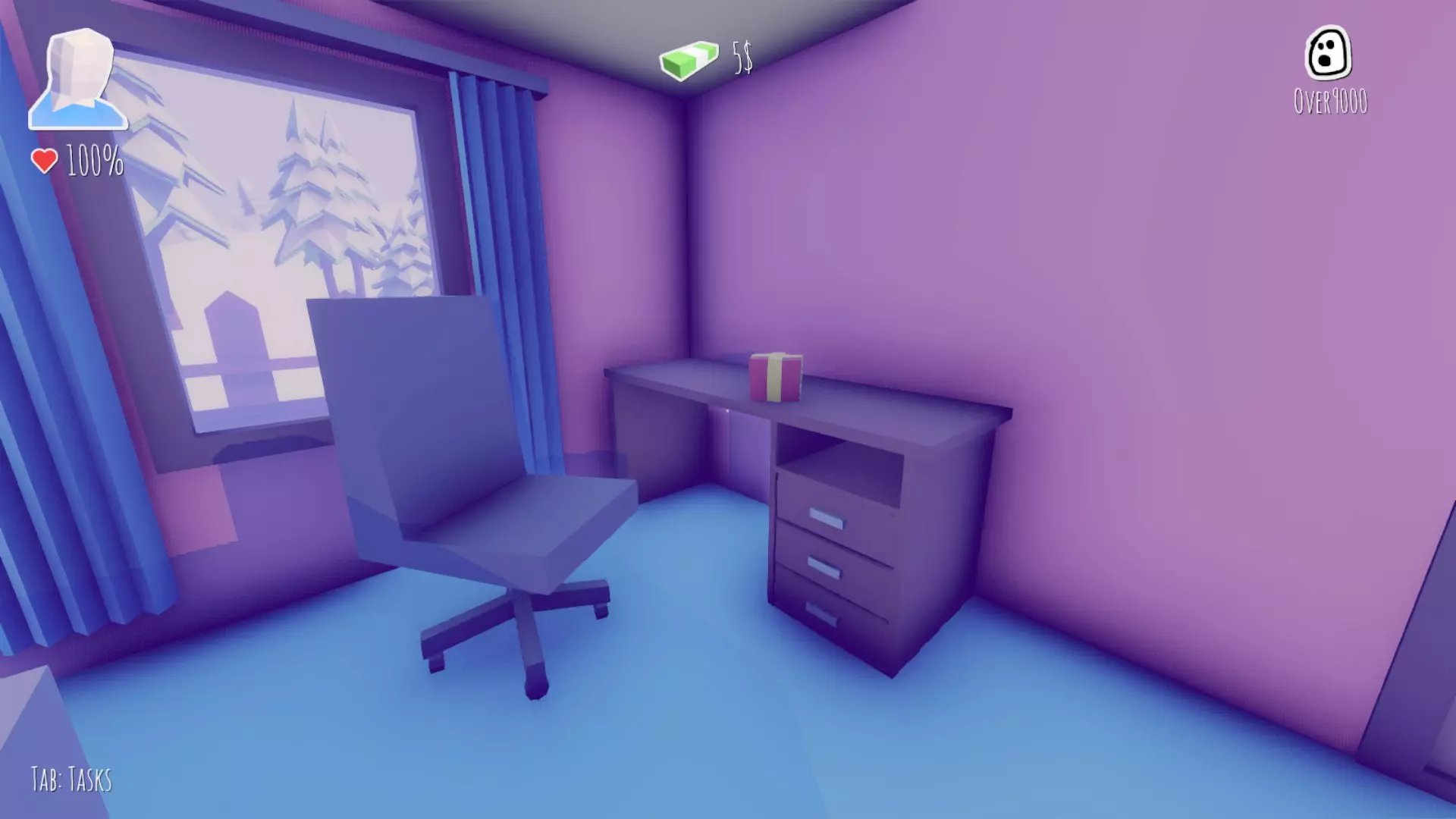 3 - 找到礼物,礼物在带办公椅的桌子上。