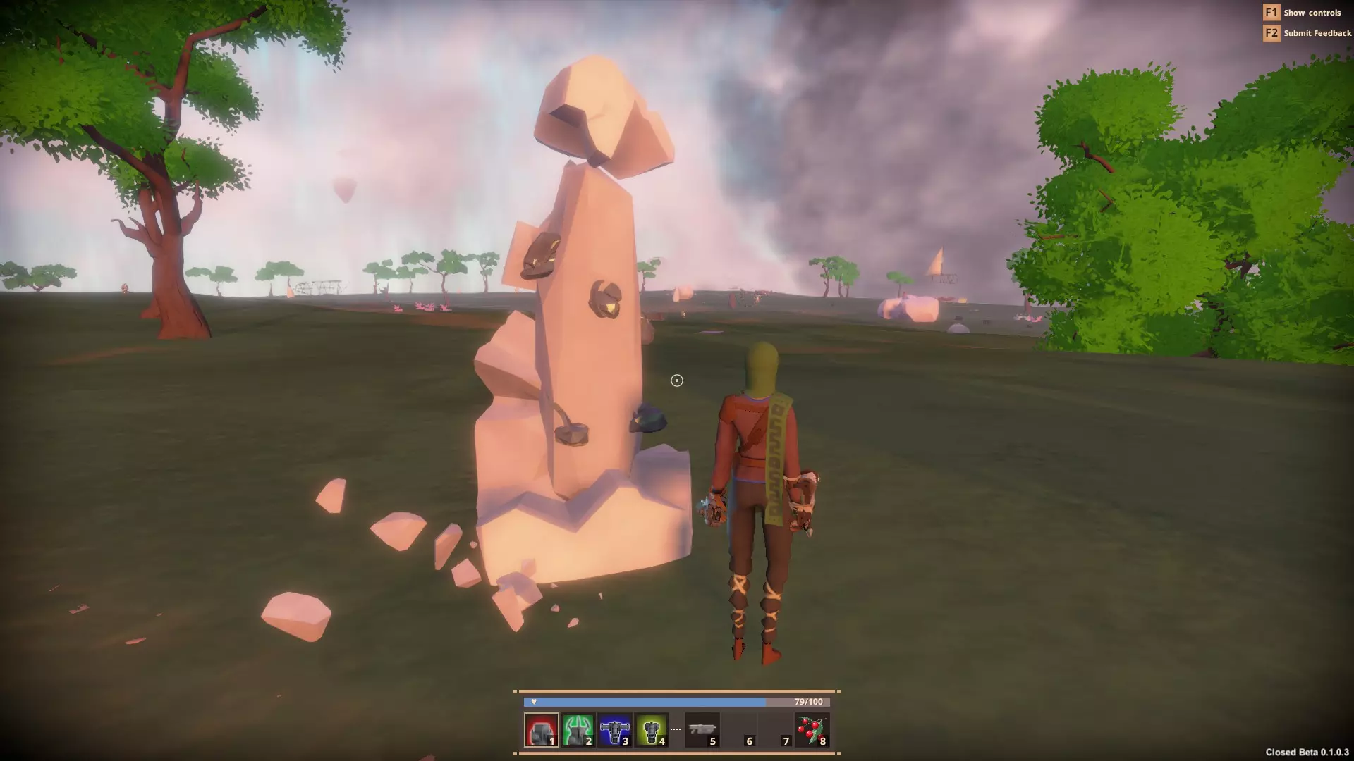 请注意,获取的知识仅适用于初次互动,其中不包括【巨石阵】,每找到一个【巨石阵】可获得25点知识。 一定要仔细查看你发现的每一个独特模型,这很有帮助……比如用3根竹竿搭起的营火?每根竹竿能提供5点知识。正是这些小细节能帮助你更快提升造船技能。 4. 采集 从树木到岩石,采集都是必不可少的环节。 采集树木时,你还会获得浆果。这些浆果食用后可以恢复生命值,但必须先装备它们。 需要注意的是,采集树木可能会激怒野生动物并遭到攻击!这些生物通常很难杀死,甚至可能会呼救!请谨慎选择采集地点! 树木!使用你的打捞工具,你可以将树木分解成段,再用它进一步爆破,就能收集到木材和浆果。