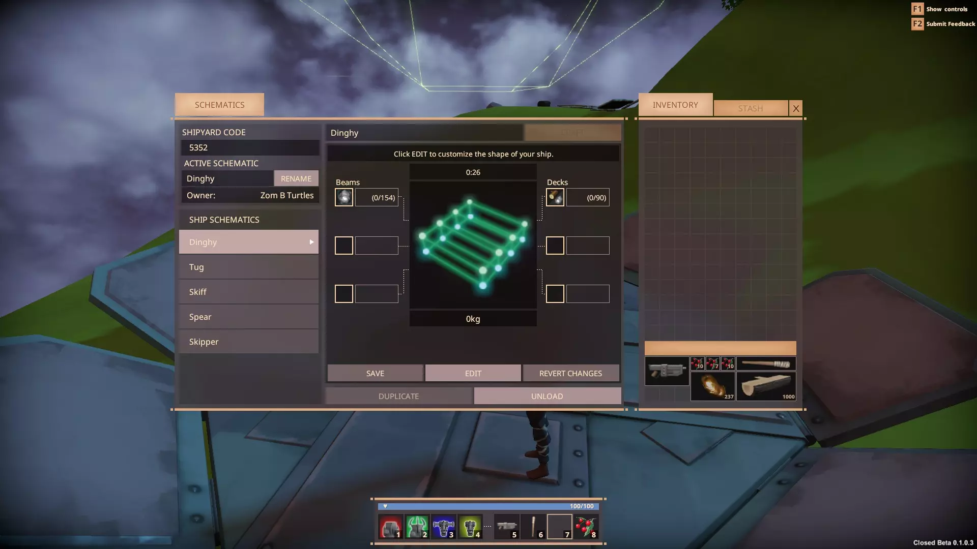 对于你的第一艘船,我推荐【小艇】。它小巧、简单,能毫不费力地带你去想去的地方。选定后,你放入材料并开始建造。注意这里的【编辑】按钮。我会在本节末尾提到它。