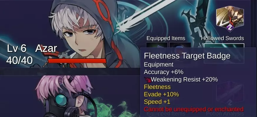 3. 按住Shift键可以快速行走。 4. 你可以通过使用物品或阅读鉴定卷轴来鉴定物品。所有卷轴和药水均无负面效果。装备上可能带有特性或诅咒。 5. 乔伊每次升级时会给你一瓶免费药水。获得时自动鉴定。 6. 若要复活角色,在物品栏中右键点击露西的项链,然后点击该角色。需要时可在营火处充能。但在专家难度下无法充能。 7. 迈达斯卷轴可以将任何物品转化为金币。为发挥最大效用,建议对装备或遗物使用。对堆叠的药水或卷轴使用不会获得额外金币。 露西的项链升级:提升复活单位时获得的生命值。战斗开始时额外抽1张卡牌。充能次数增加至2次。 营火1.在区域2和区域4之前,你可以通过【请求救援】增加更多队友。 2. 你可以通过【使用营地道具】在队伍间分享食物。这能治愈所有队员并为他们提供全体增益。(尝试分享草药、红薯和金苹果。) 3. 你可以将遗物放入玻璃展示架以激活其效果。 4. 你可以使用书本进行1次存档。 5. 你可以在灯柱处为露西的项链充能并重新学习技能。 战斗基础 技能系统 1. 当角色学习超过5个技能后,游戏会自动删除你的基础技能。不过,你可以在选项中关闭此功能。 2. 当角色学习超过5个技能后,你可以删除书本技能和基础技能。你也可以将这些技能传授给其他角色。 3.部分书本技能无法被修复。 4. 修复类技能有2回合冷却时间。 初始抽牌数和战斗抽牌数是不同的。 两种抽牌的默认数量均为3。 购买露西项链升级可使初始抽牌数+1。 每增加1名队伍成员,初始抽牌数+1。 部分攻击或治疗卡牌在使用后可生成更多卡牌。 战斗说明1011:屏幕中上方有带数字的云朵图标,显示距离黑雾覆盖整个战场还剩多少回合。黑雾降临后,你只能治疗生命值条的绿色部分,无法治疗灰色的缺失部分,且每回合会受到额外伤害。 2. 将鼠标悬停在敌人身上可查看其状态异常抗性。 3.当敌人生命值条左侧的数字归零时,该敌人将进行行动。你的队伍速度会对这个数字产生影响。你可以通过卷轴或装备来提升速度。尽量避免使用会降低速度的装备。带有迅捷效果的卡牌不会减少这个数字。 4. 每回合你可以选择切换1张卡牌或弃置1张卡牌。弃置卡牌还可以解除眩晕状态。 5. 带有嘲讽效果的敌人必须被优先击败,之后才能攻击其他敌人。不过,有些攻击技能卡牌和装备可以无视嘲讽。 6. 有可能闪避 Boss 的特殊负面效果。 7. 在战斗中你可以对敌人使用一些负面药水。 8. 过载系统:每个角色的技能卡牌每使用一次,其消耗就会增加。特殊战斗对话 1. 女巫 VS 凤凰 2. 露比与萨菲拉 VS 翠莎 3. 神圣卡拉埃拉 VS 凤凰和/或普雷塞尔 地点说明 道具商店 你可以在这里购买道具。一把钥匙售价600金币,一本技能书售价300金币,一张卷轴售价160金币。如果你有剩余金币,可以考虑购买道具卷轴,因为你可能会获得更多金币。它还能产出关键装备和升级宝珠。 你也可以在商店鉴定物品。初始鉴定费用为250金币,每次鉴定费用增加100金币。