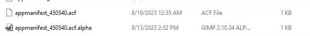 接下来,你需要返回上一级文件夹,即C: Program Files (x86) Steam steamapps,找到appmanifest_450540.acf文件。复制该文件并将其重命名为appmanifest_450540.acf.(分支名称),同样将“分支名称”替换为你的分支。我最初使用的是Alpha分支,所以我的文件是这样的: