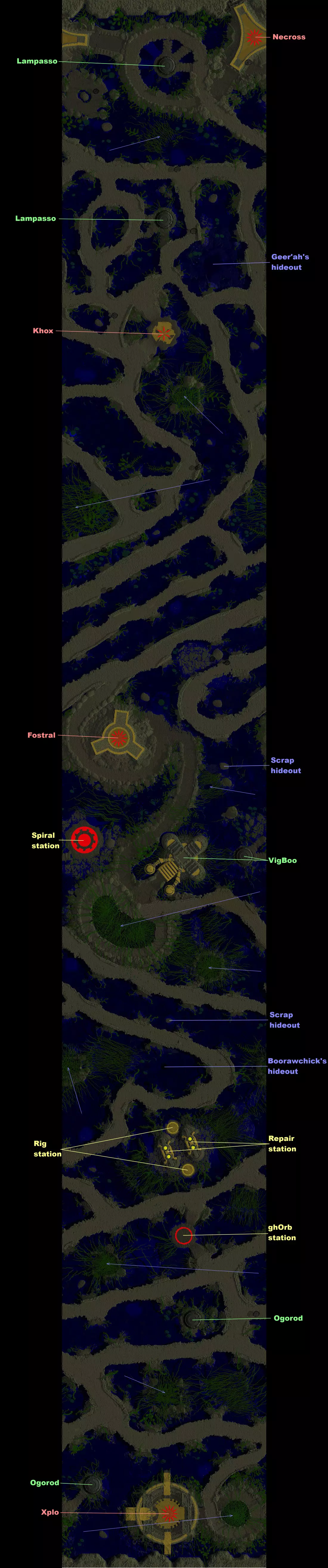 这是一篇制作中的《Vangers》全地图指南,包含已标记点位的地图,涉及福斯特拉尔、格洛克斯、Necross、Xplo等区域,还可查看作者的《异星特勤队》相关指南。