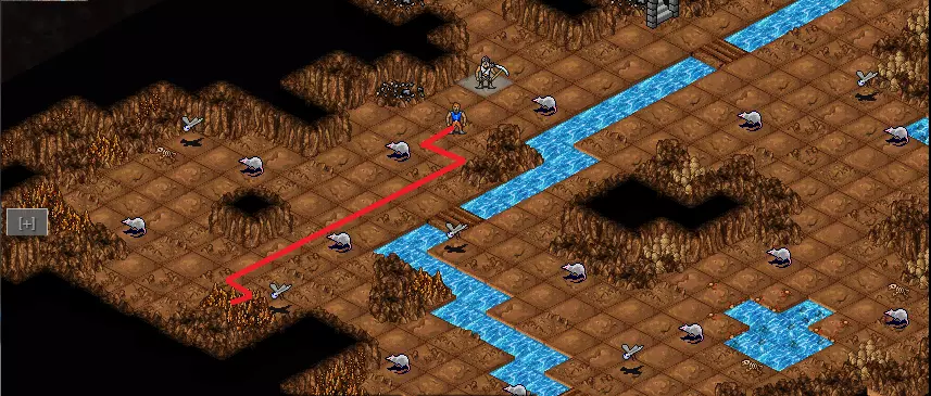 怪物只会在自身周围4格范围内对你产生仇恨。了解这一点后,你就可以安心地绕开它们了。 这就是你前往珍贵的【铁矿石】的路线。